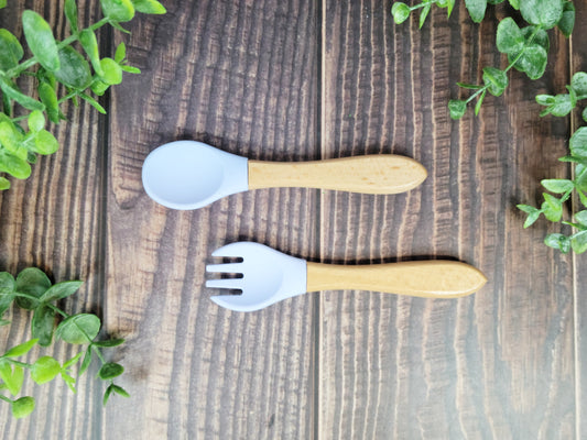 Fork & Spoon set, Silicone and wood handle silverware set, spoon and fork set, silverware for engraving, engraving blanks