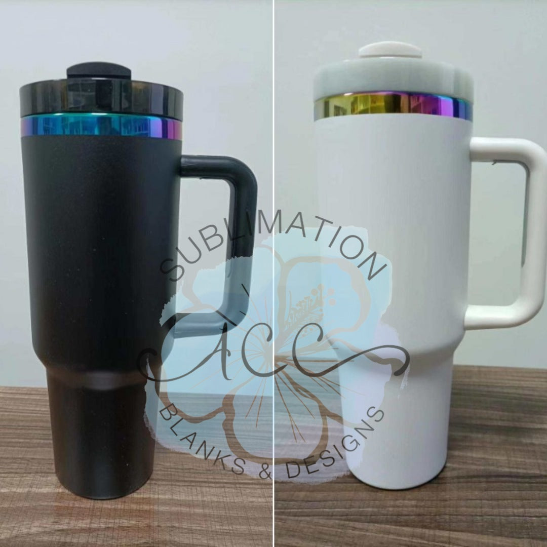 40oz Rainbow Base Stainless Steel Tumbler with Handle - DIY Crafting Blank for Engraving, Epoxy, Stripping (Not for Sublimation) - Ready to Ship (RTS)