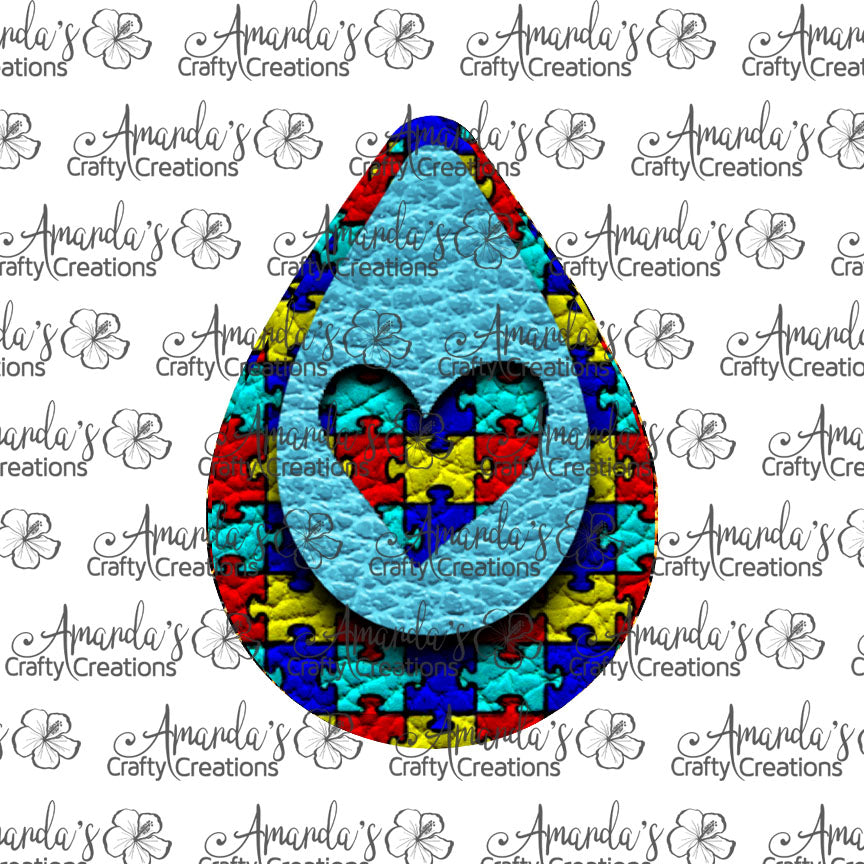 Aqua Autism Puzzle Heart Cutout Teardrop Earring Sublimation Design, Hand drawn Teardrop Sublimation earring design, digital download, JPG, PNG