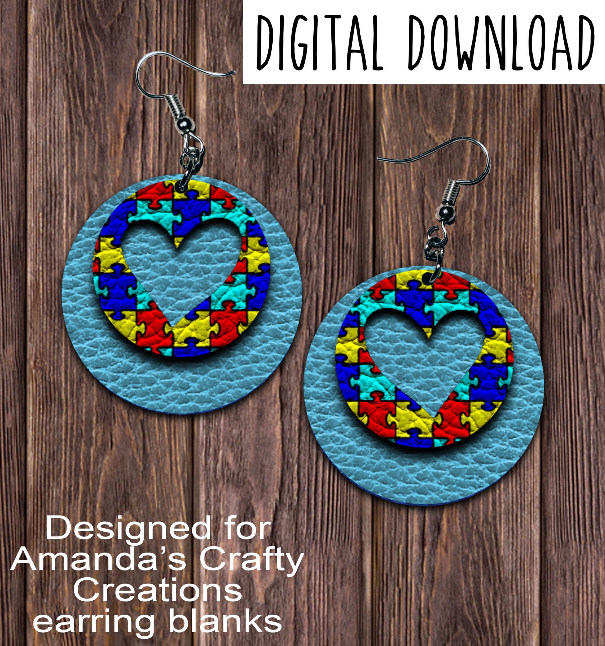 Aqua Heart Autism Awareness Puzzle Circle Earring Sublimation Design, Hand drawn Circle Sublimation earring design, digital download, JPG, PNG