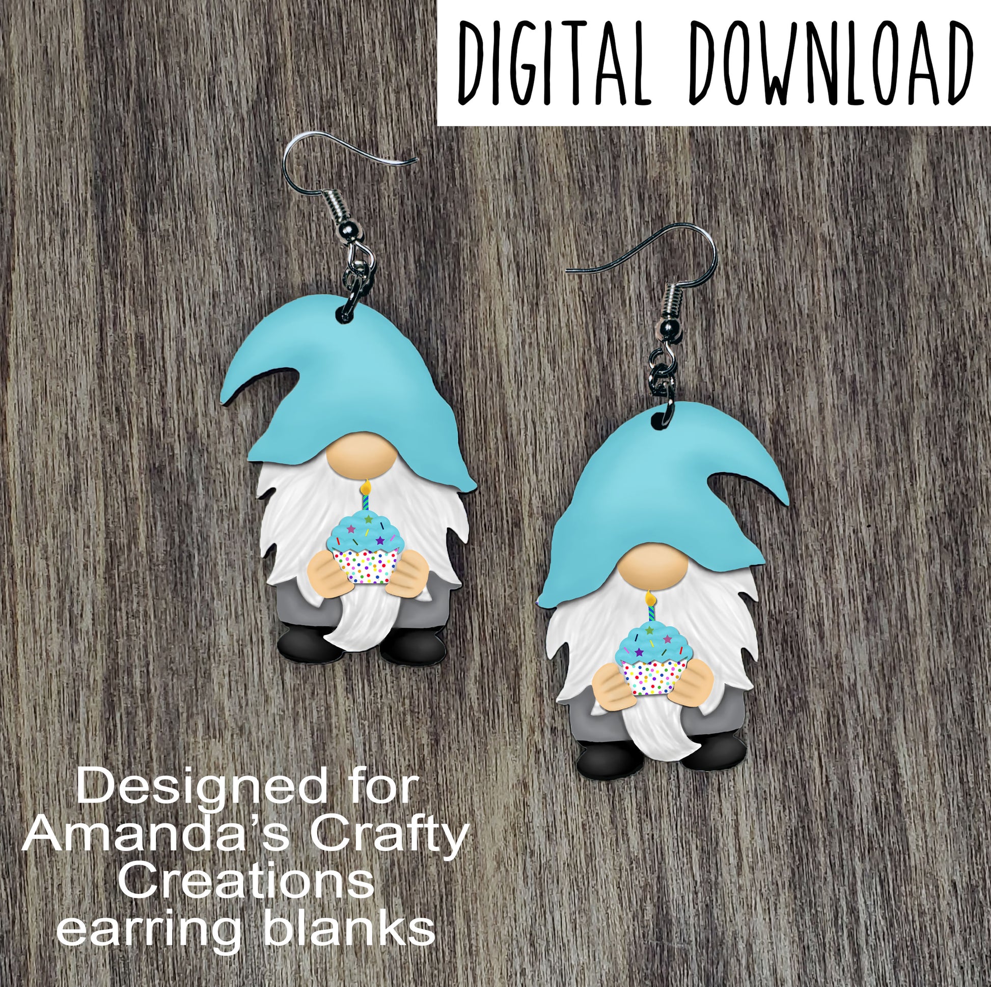 Birthday Gnome Earring Sublimation Design, Hand drawn Gnome Sublimation earring design, digital download, JPG, PNG