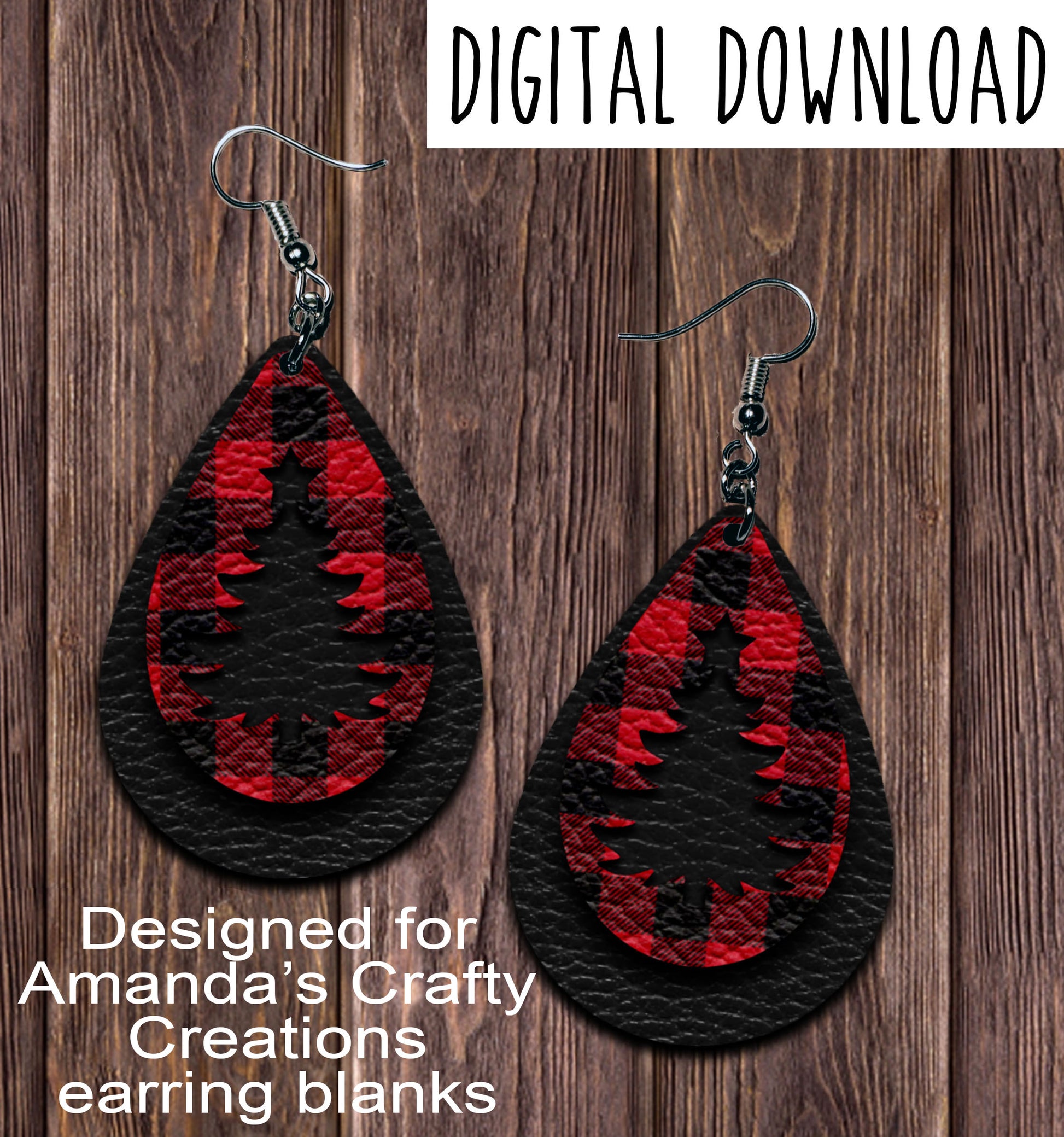 Black Buffalo Plaid Black Tree Cutout Teardrop Earring Sublimation Design, Hand drawn Teardrop Sublimation earring design, digital download, JPG, PNG