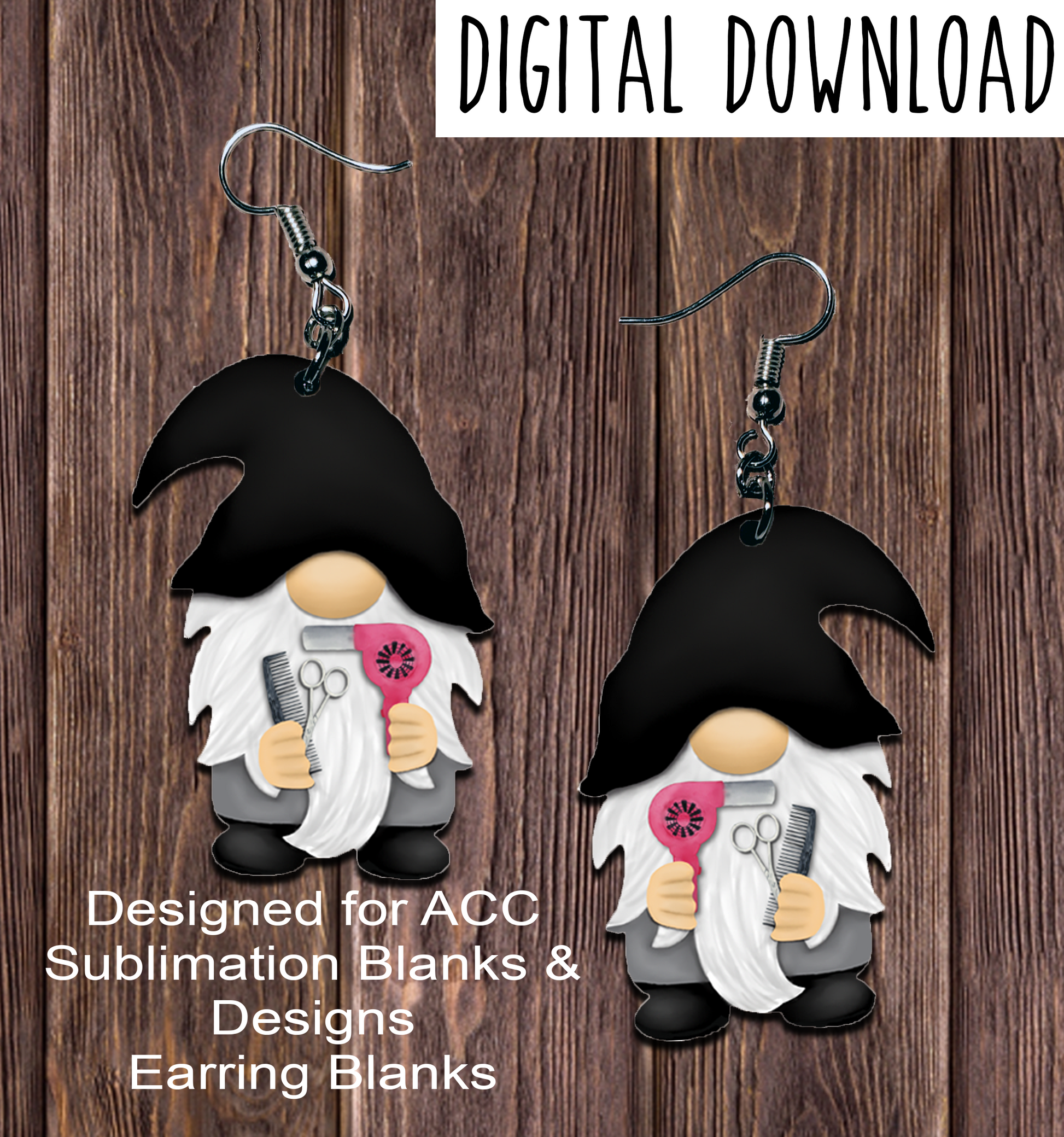 Black Hat Hair Stylist Gnome Earring Sublimation Design, Hand drawn Gnome Sublimation earring design, digital download, JPG, PNG