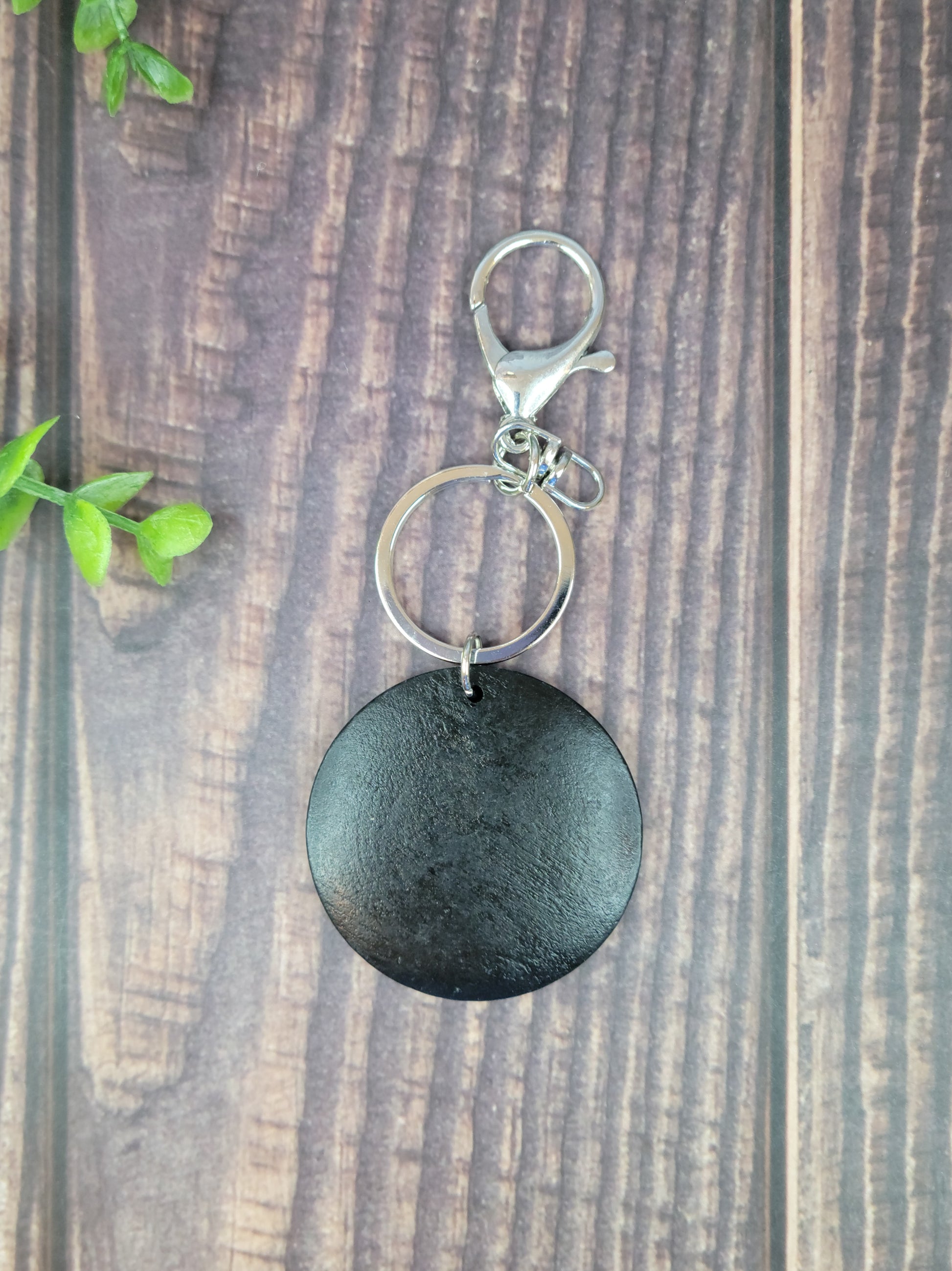 Black Wood disc keychain with silver ring and clasp, laser engraving wood disc keychain RTS