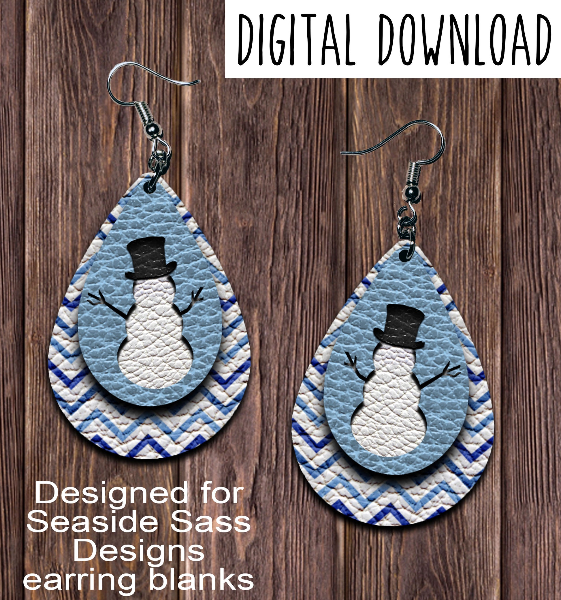 Blue Chevron Snowman Teardrop Earring Sublimation Design, Hand drawn Teardrop Sublimation earring design, digital download, JPG, PNG