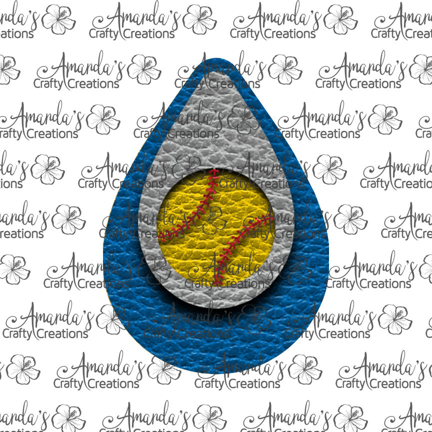 Blue Gray Softball Cut Out Teardrop Earring Sublimation Design, Hand drawn Teardrop Sublimation earring design, digital download, JPG, PNG