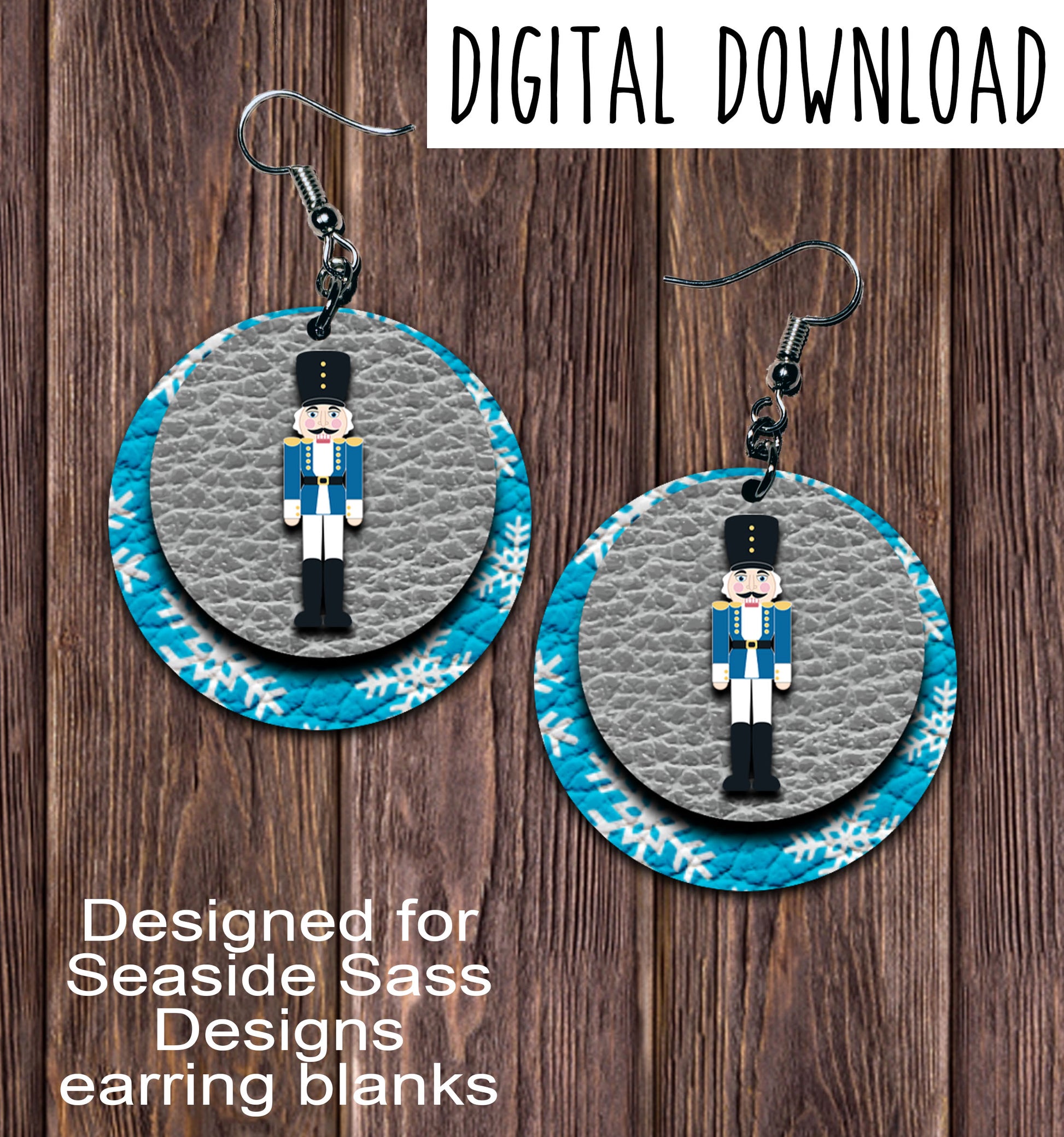 Blue Nutcracker Circle Earring Sublimation Design, Hand drawn Circle Sublimation earring design, digital download, JPG, PNG
