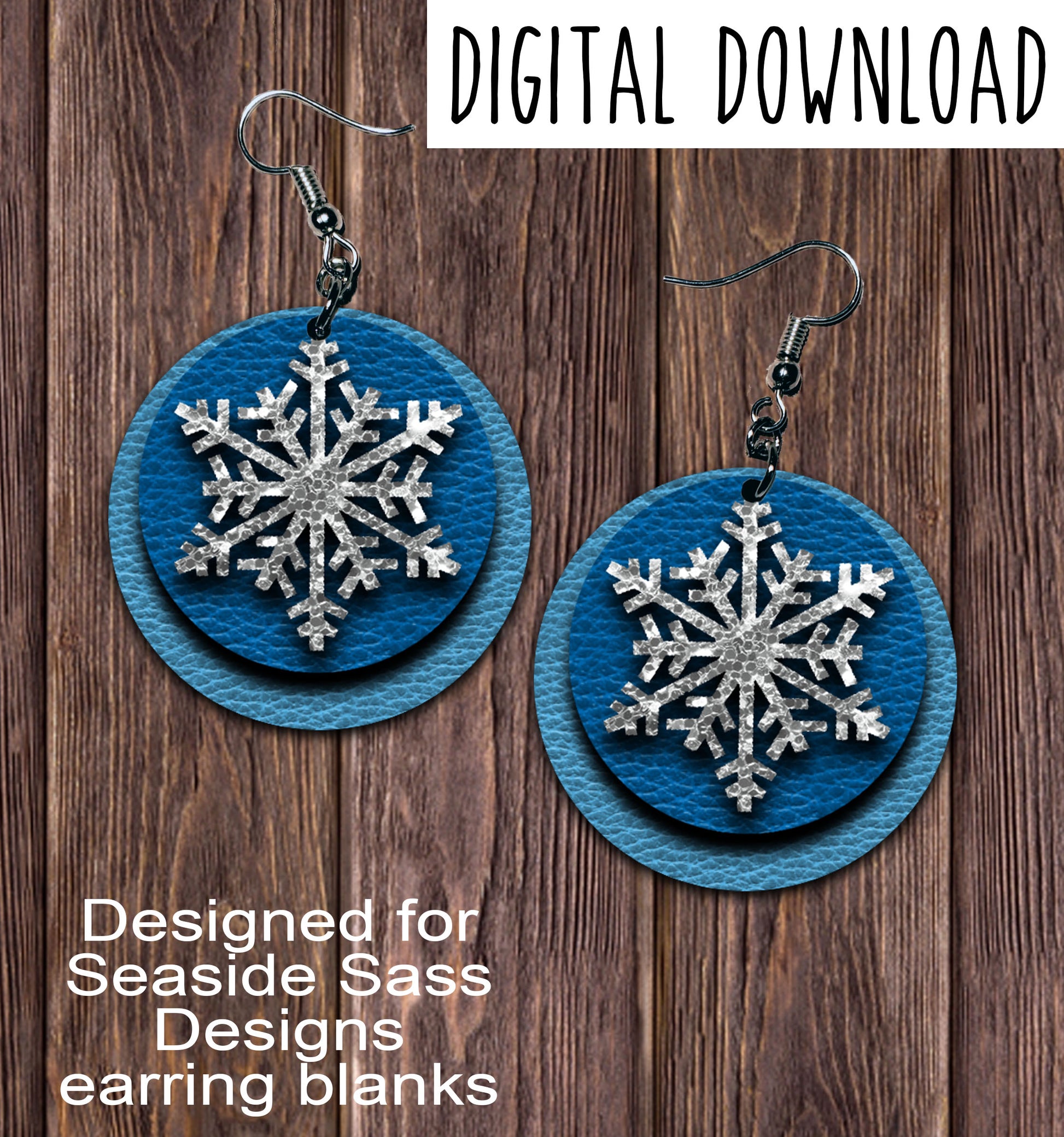 Blue Snowflake Circle Earring Sublimation Design, Hand drawn Circle Sublimation earring design, digital download, JPG, PNG