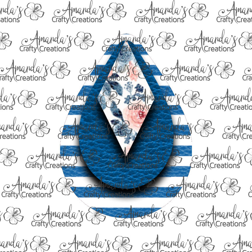 Blue Stripe Floral Teardrop Earring Sublimation Design, Hand drawn Teardrop Sublimation earring design, digital download, JPG, PNG