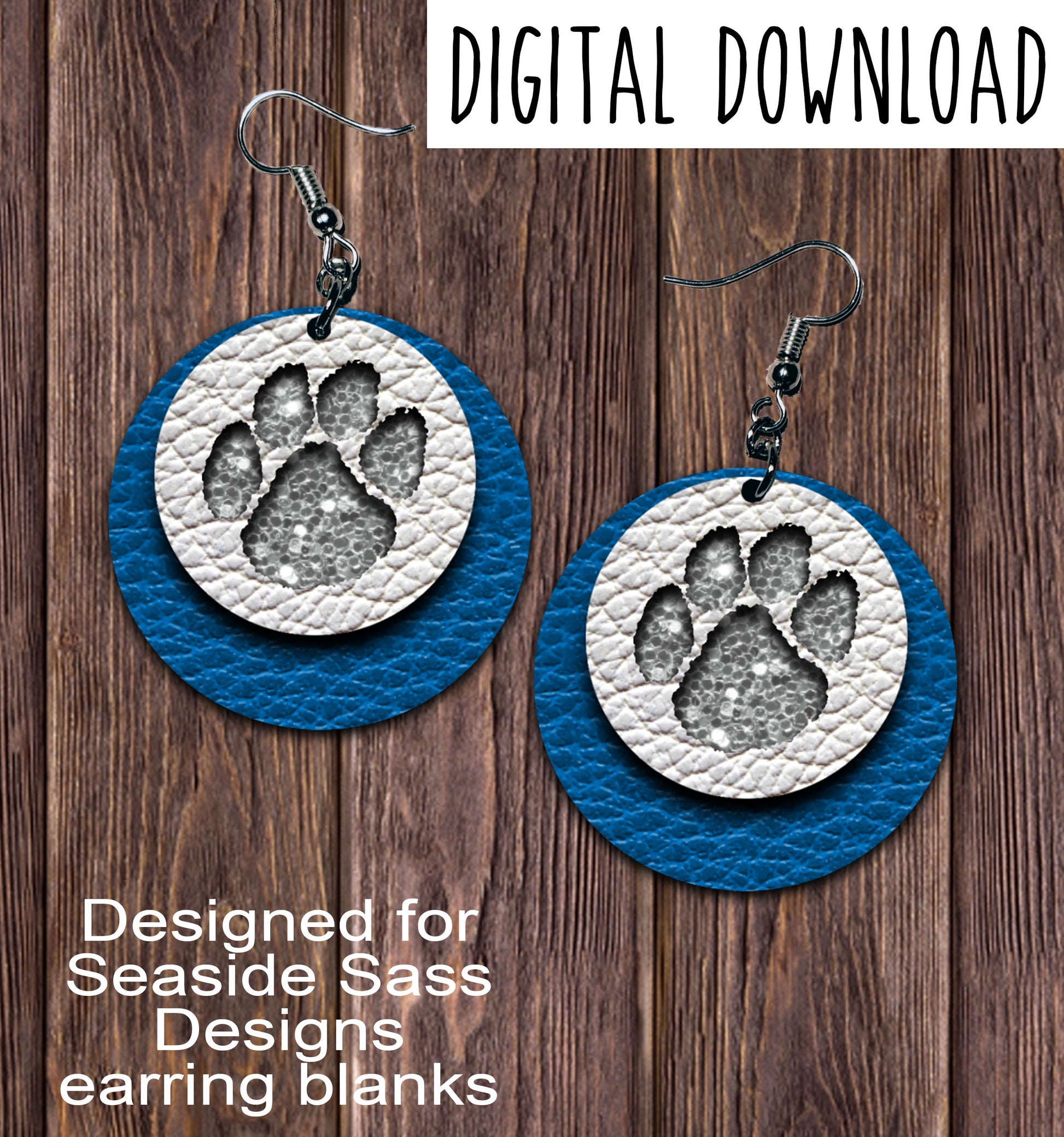 Blue White Silver Chunk Paw Cut Out Circle Earring Sublimation Design, Hand drawn Circle Sublimation earring design, digital download, JPG, PNG
