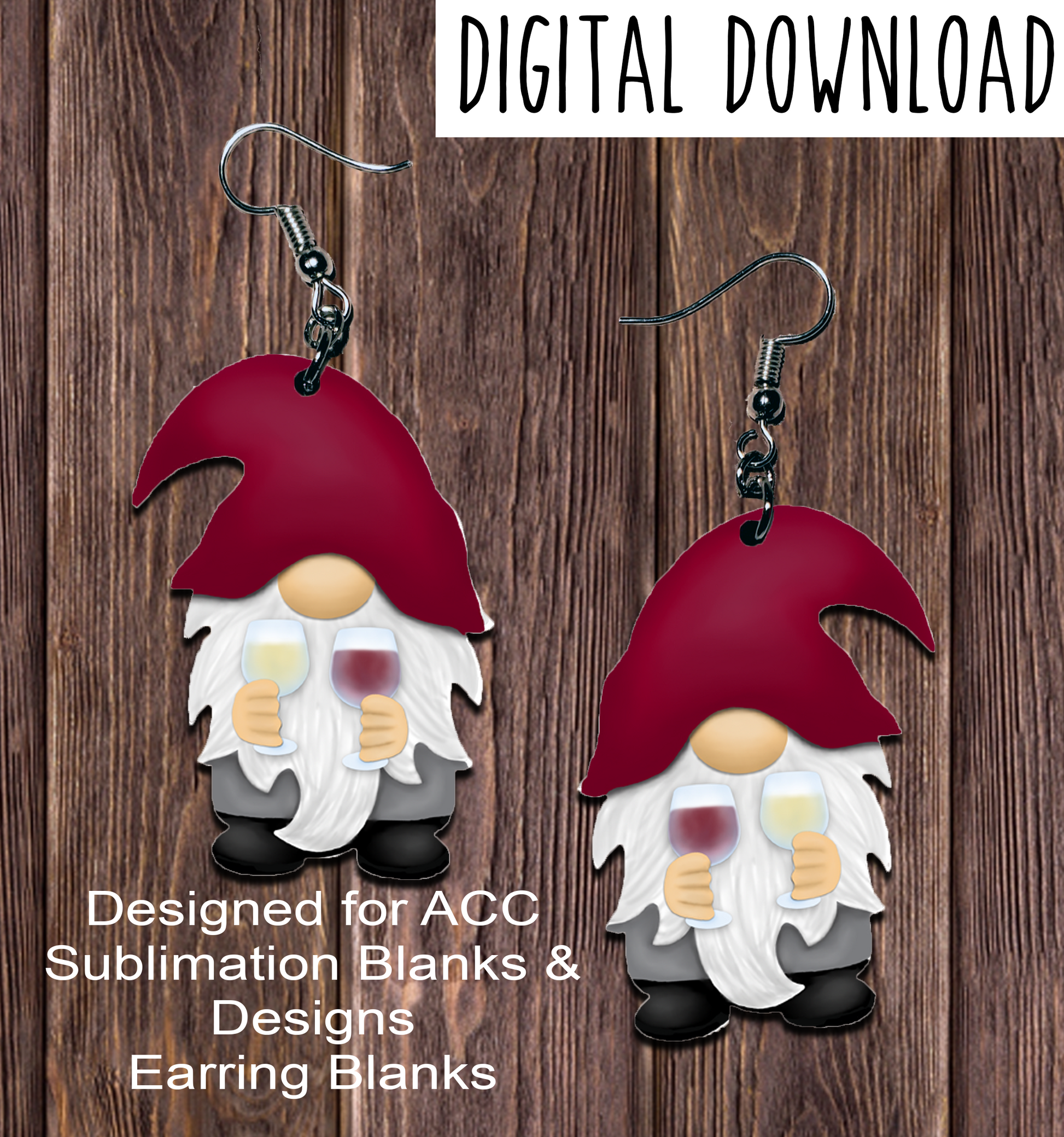 Both Red and White Wine Gnome Earring Sublimation Design, Hand drawn Gnome Sublimation earring design, digital download, JPG, PNG