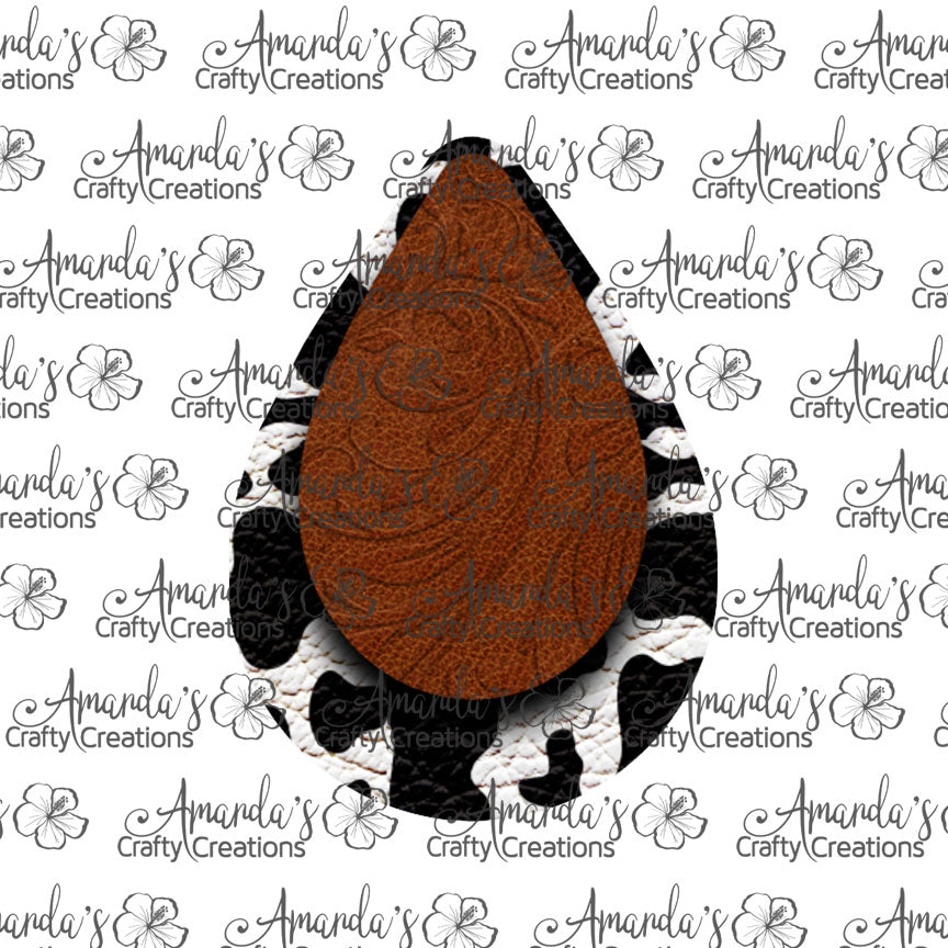 Brown Leather Embossed Cow Print Teardrop Earring Sublimation Design, Hand drawn Teardrop Sublimation earring design, digital download, JPG, PNG