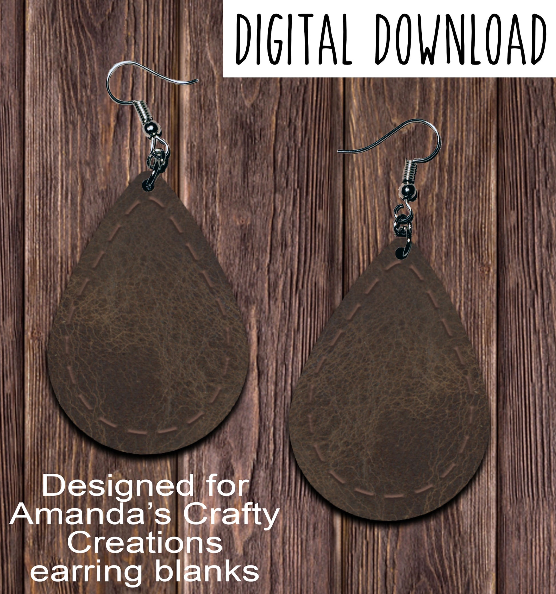 Brown Leather Stitched Teardrop Earring Sublimation Design, Hand drawn Teardrop Sublimation earring design, digital download, JPG, PNG