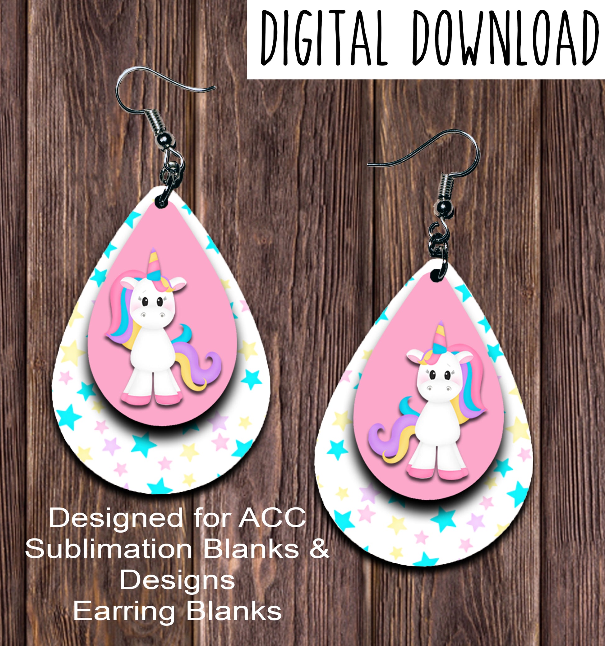 Unicorn Pink Stars Teardrop Earring Sublimation Design, Hand drawn Teardrop Sublimation earring design, digital download, JPG, PNG