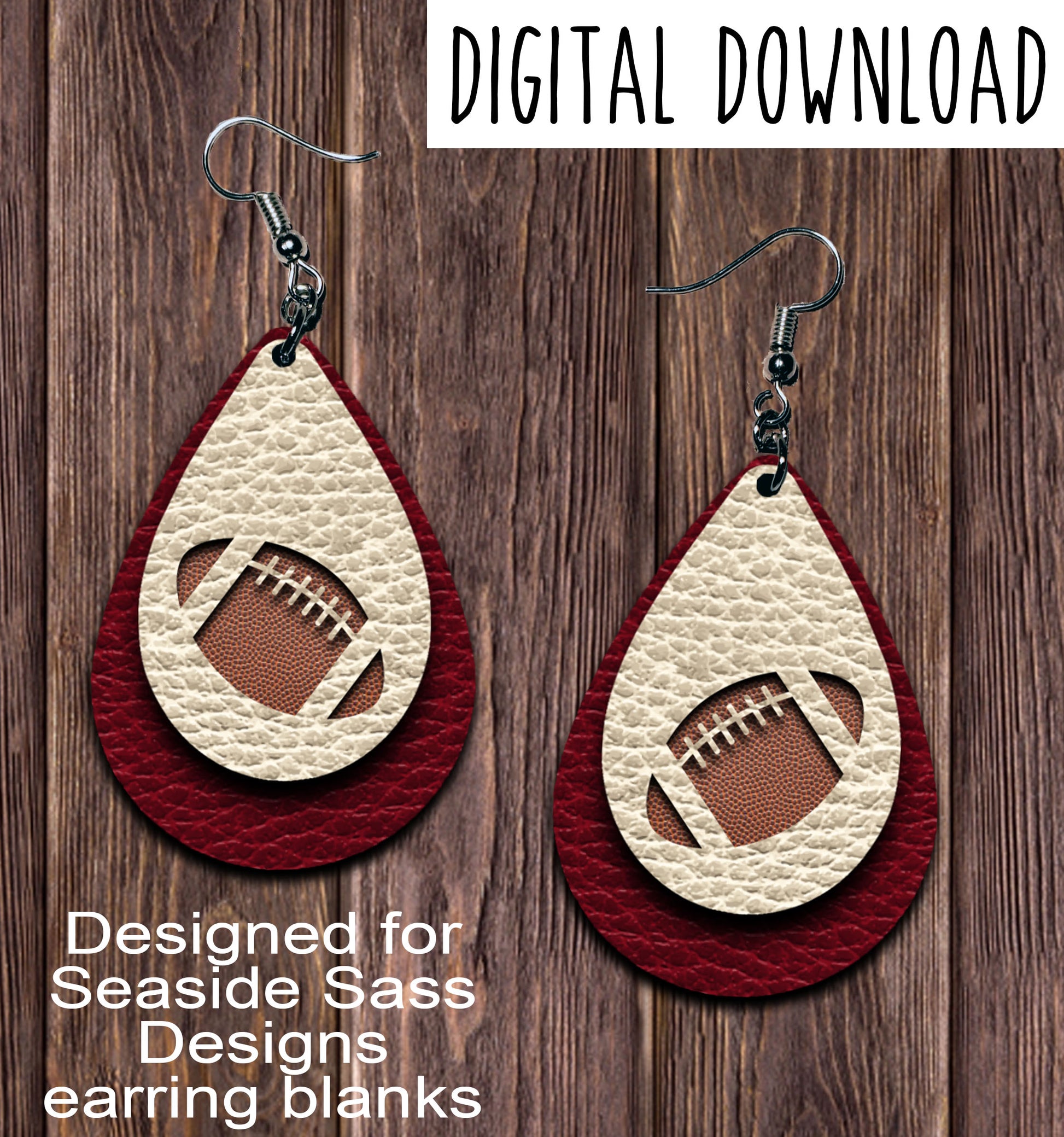 Crimson Cream Football Cut Out Teardrop Earring Sublimation Design, Hand drawn Teardrop Sublimation earring design, digital download, JPG, PNG