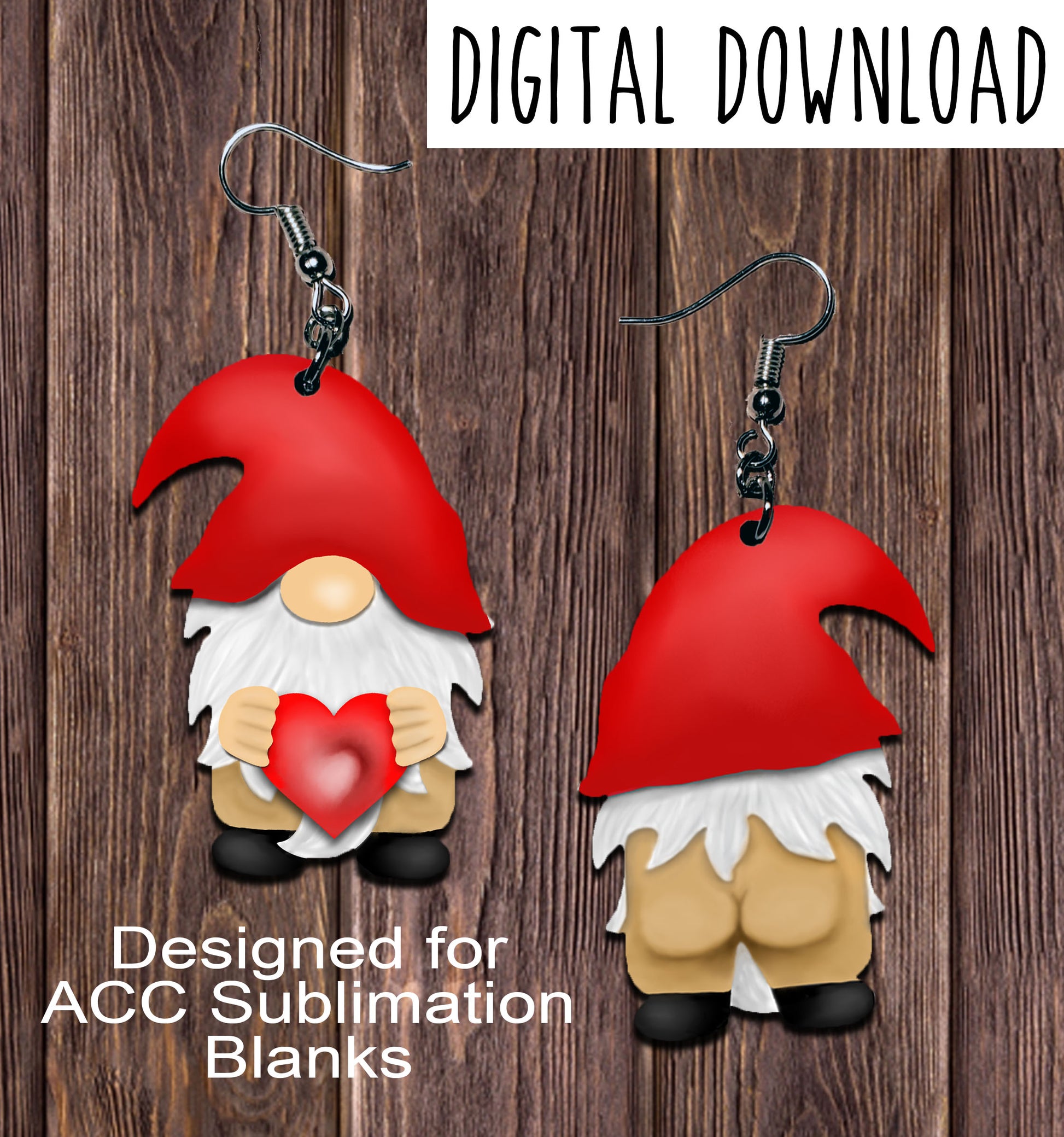 Double Sided Naked Gnome with Red Hat Sublimation Design, "Happy to see you" funny adult themed gnome design, Hand drawn Gnome Sublimation earring design, digital download, JPG, PNG