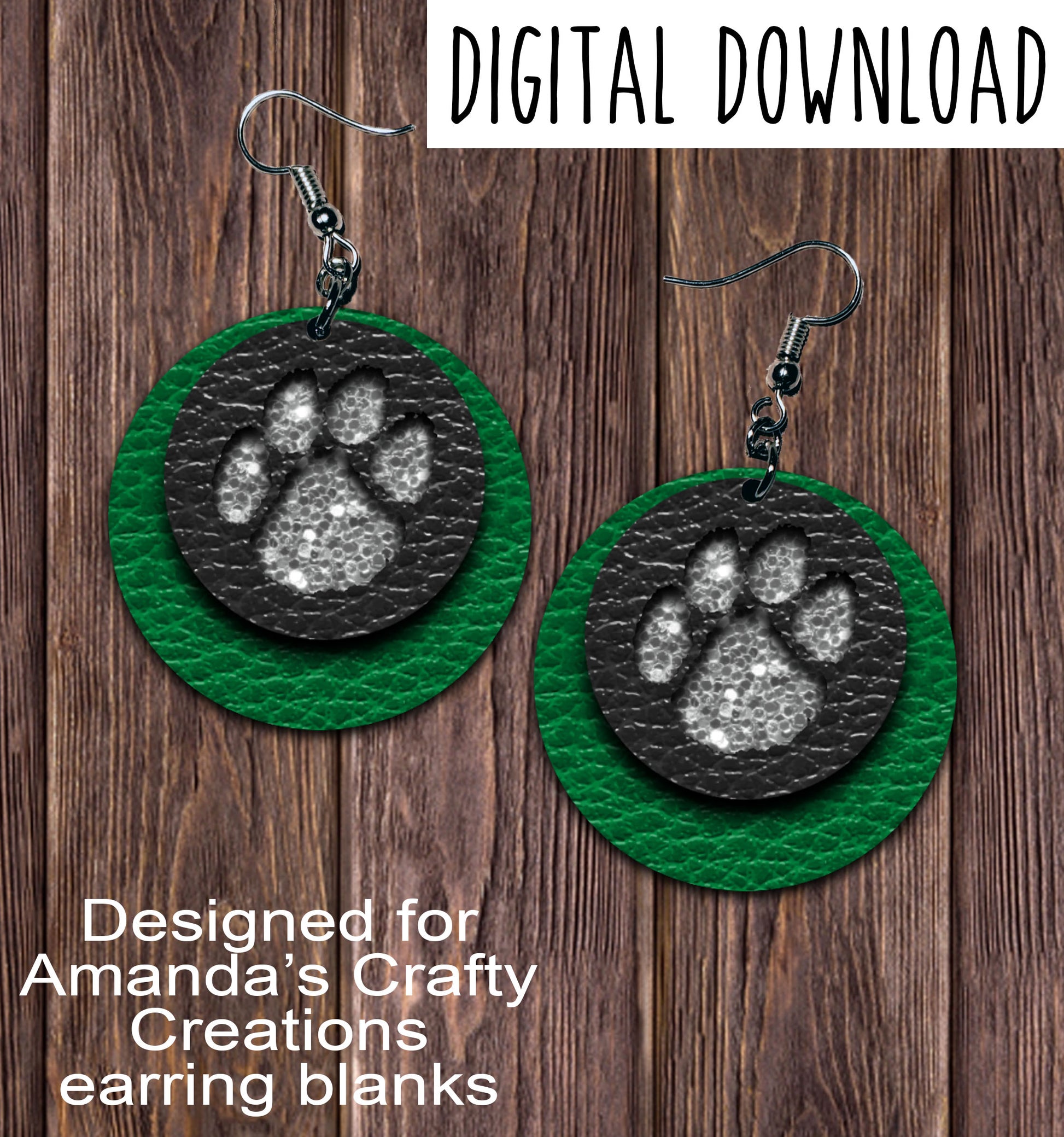 Green Black Silver Chunk Paw Print Circle Earring Sublimation Design, Hand drawn Circle Sublimation earring design, digital download, JPG, PNG