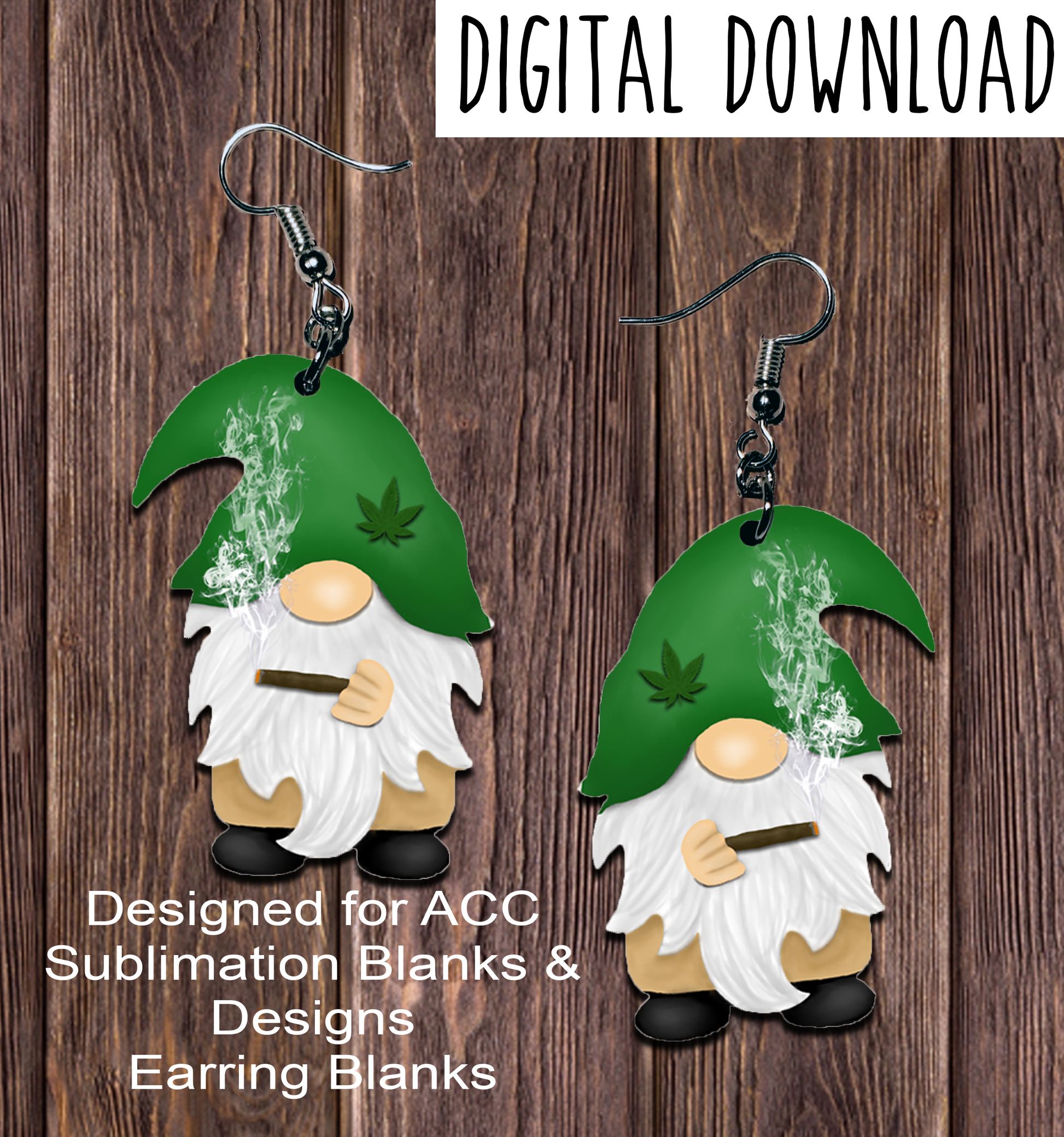 Green Hat Marijuana Blunt Naked Gnome Earring Sublimation Design, Hand drawn Gnome Sublimation earring design, digital download, JPG, PNG
