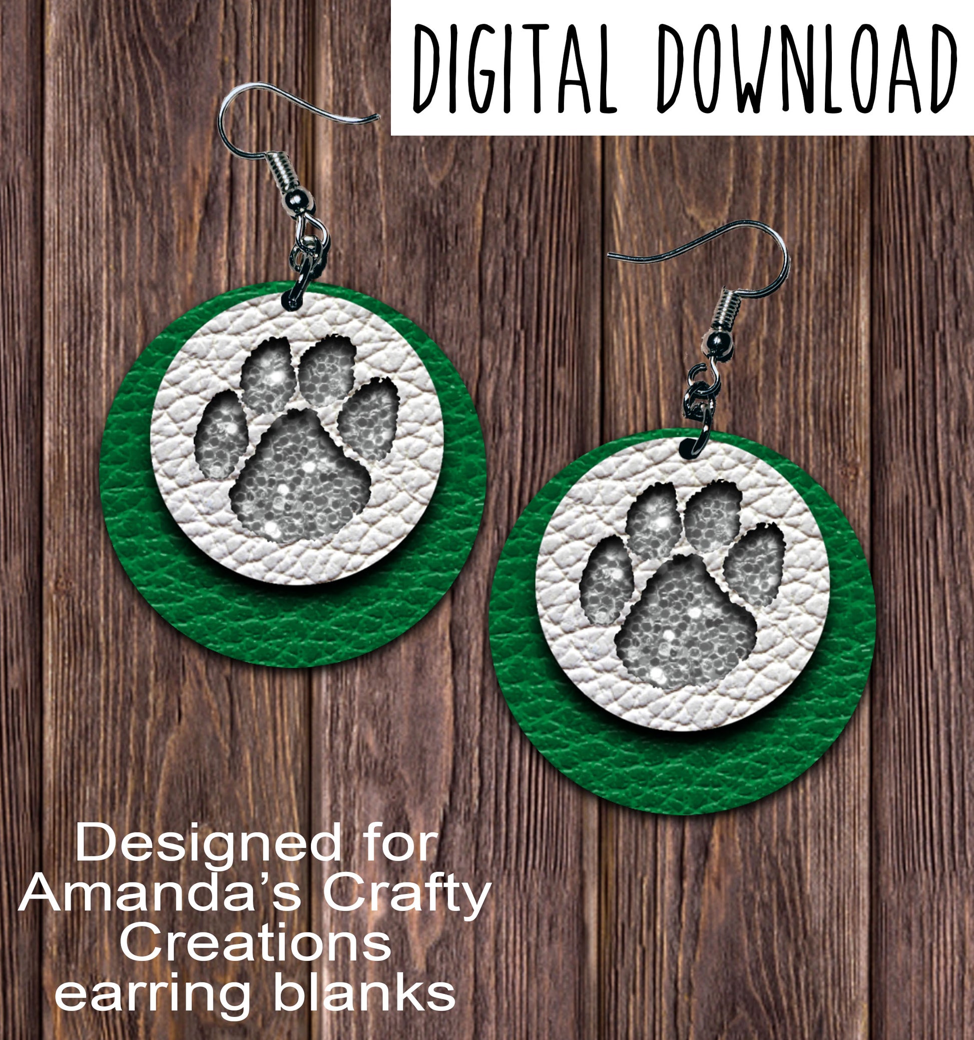 Green White Silver Chunk Paw Print Circle Earring Sublimation Design, Hand drawn Circle Sublimation earring design, digital download, JPG, PNG