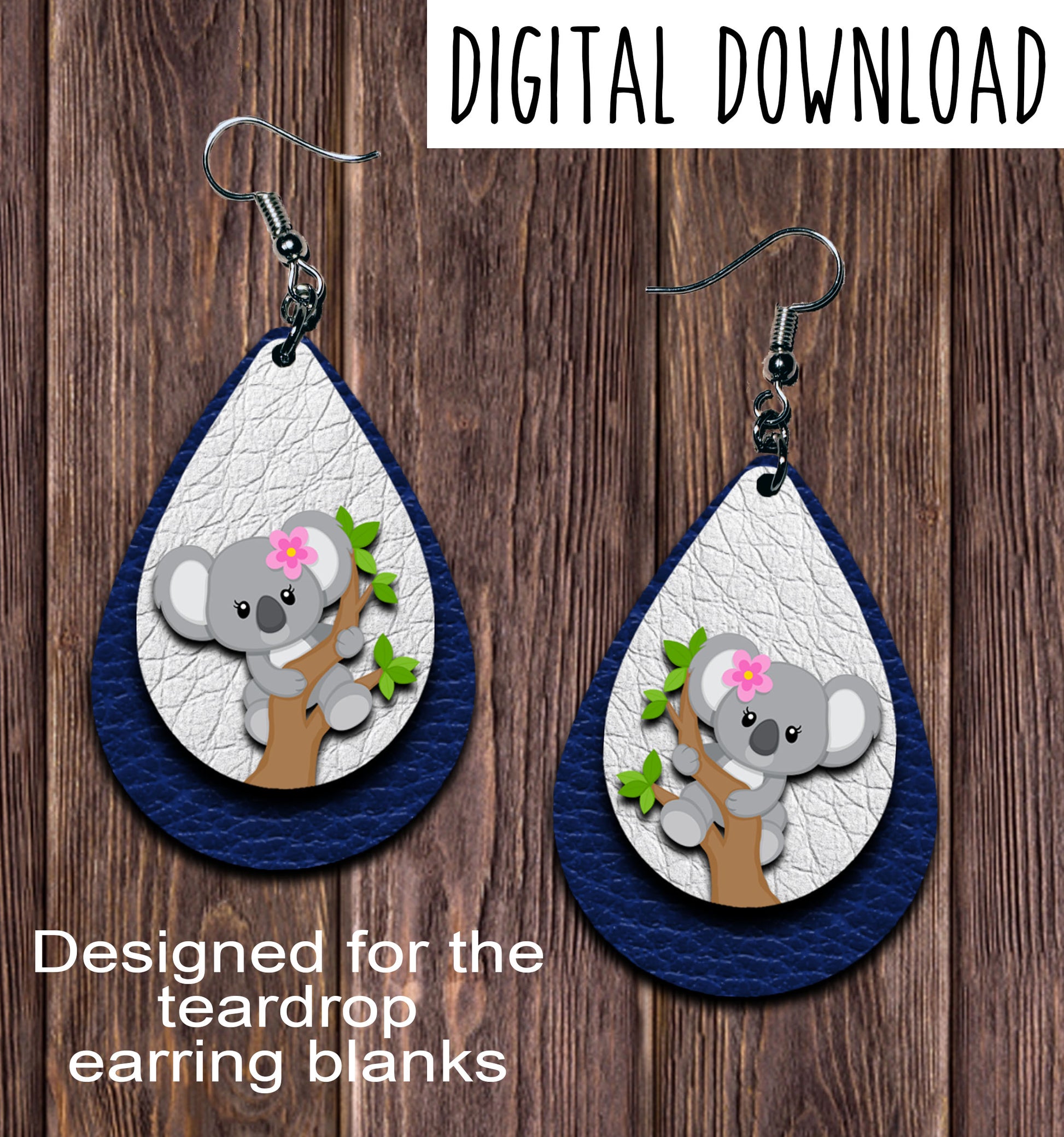 Koala in Tree Navy Teardrop Earring Sublimation Design, Hand drawn Teardrop Sublimation earring design, digital download, JPG, PNG