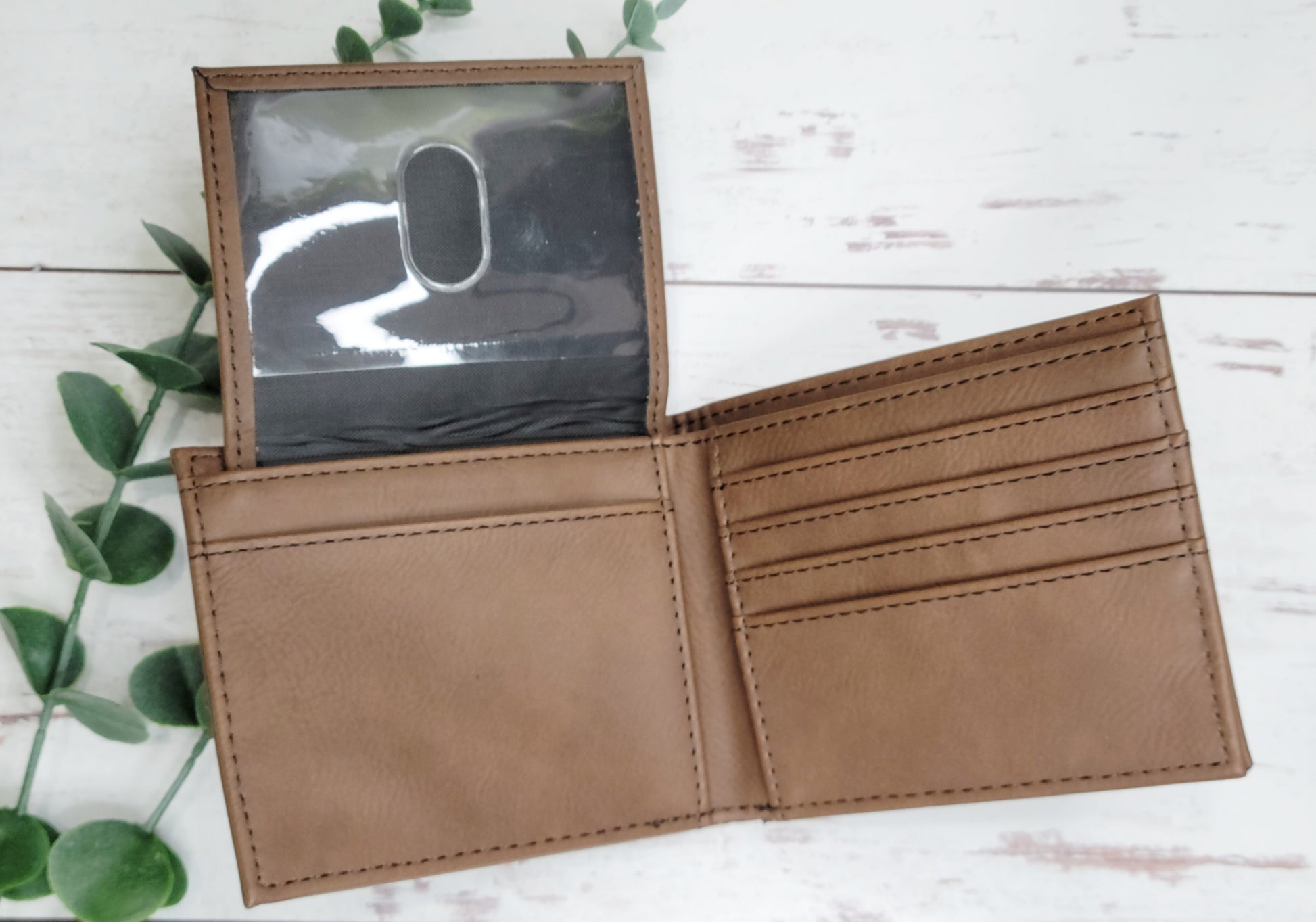 Laserable Leatherette Wallets, Bi fold wallets for engraving, laser safe wallets, engraveable wallets RTS