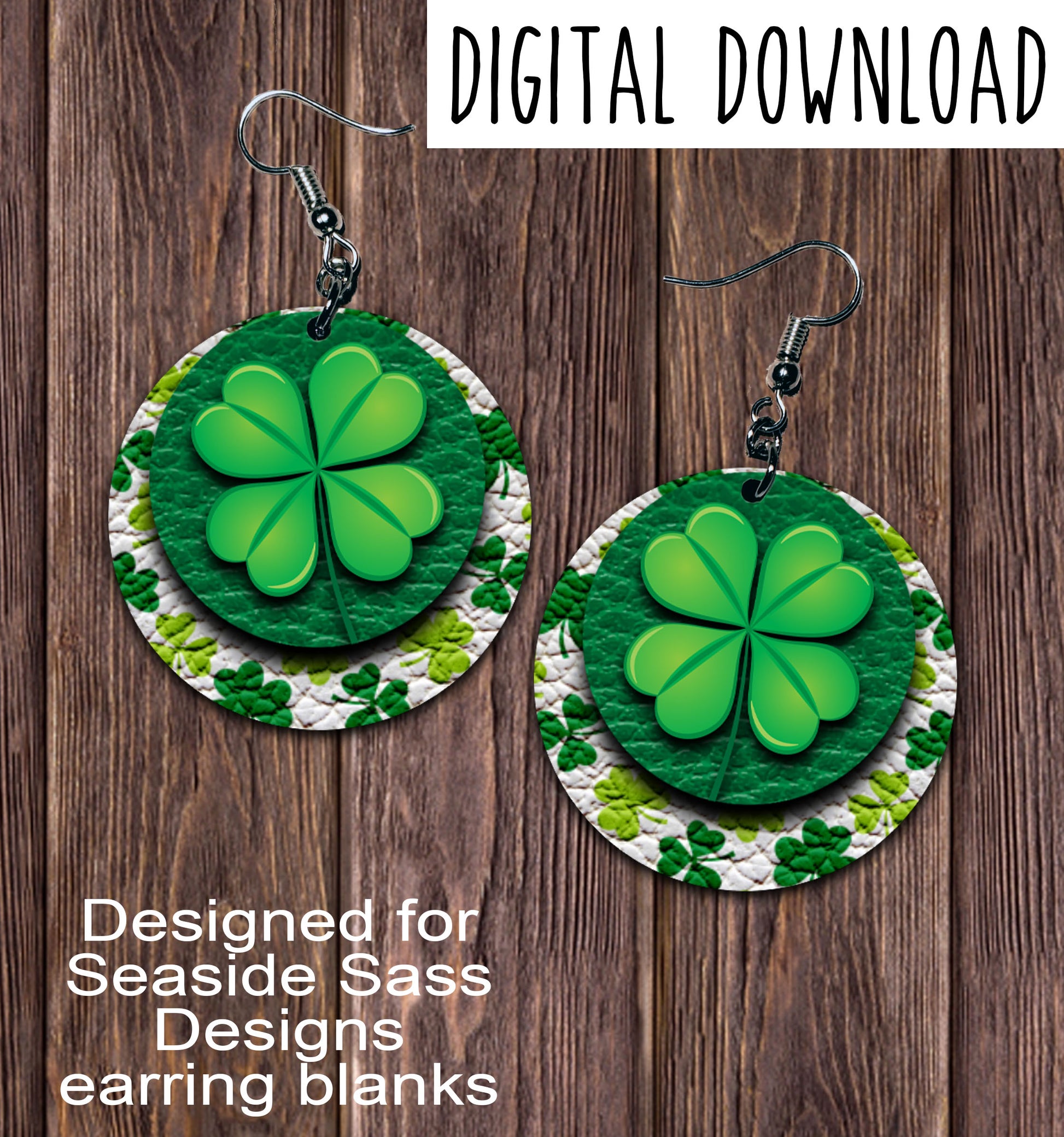 Leaf Clover Circle Earring Sublimation Design, Hand drawn Circle Sublimation earring design, digital download, JPG, PNG