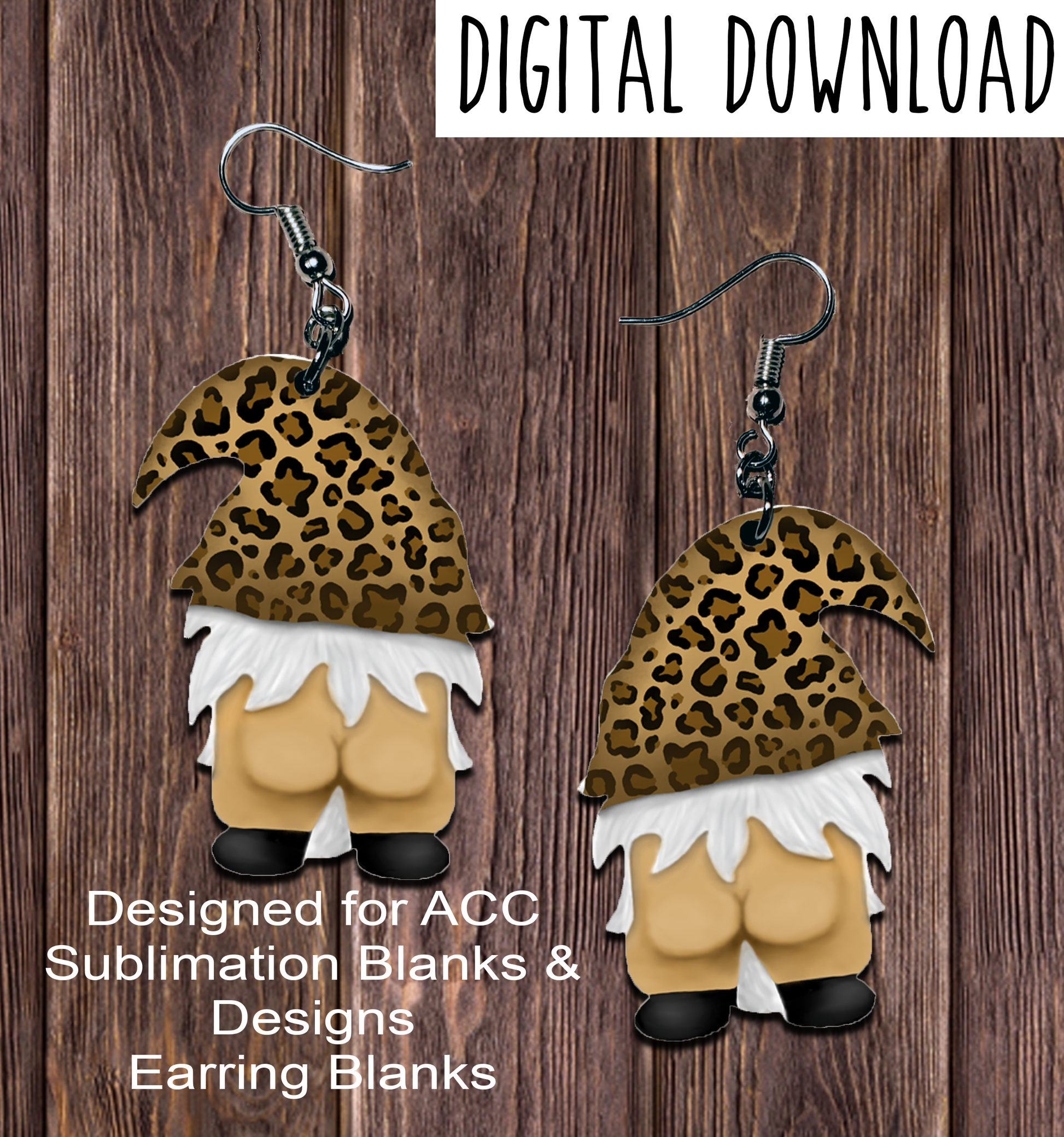 Leopard Hat Naked Back Gnome Earring Sublimation Design, Hand drawn Gnome Sublimation earring design, digital download, JPG, PNG