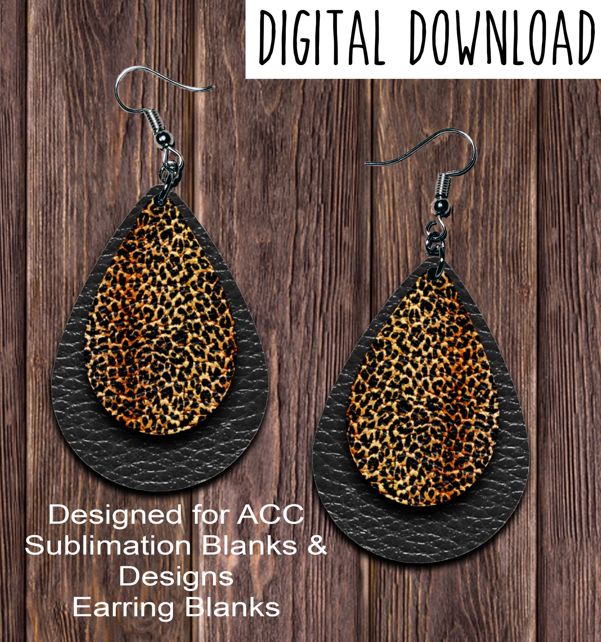 Leopard Print Black Teardrop Earring Sublimation Design, Hand drawn Teardrop Sublimation earring design, digital download, JPG, PNG