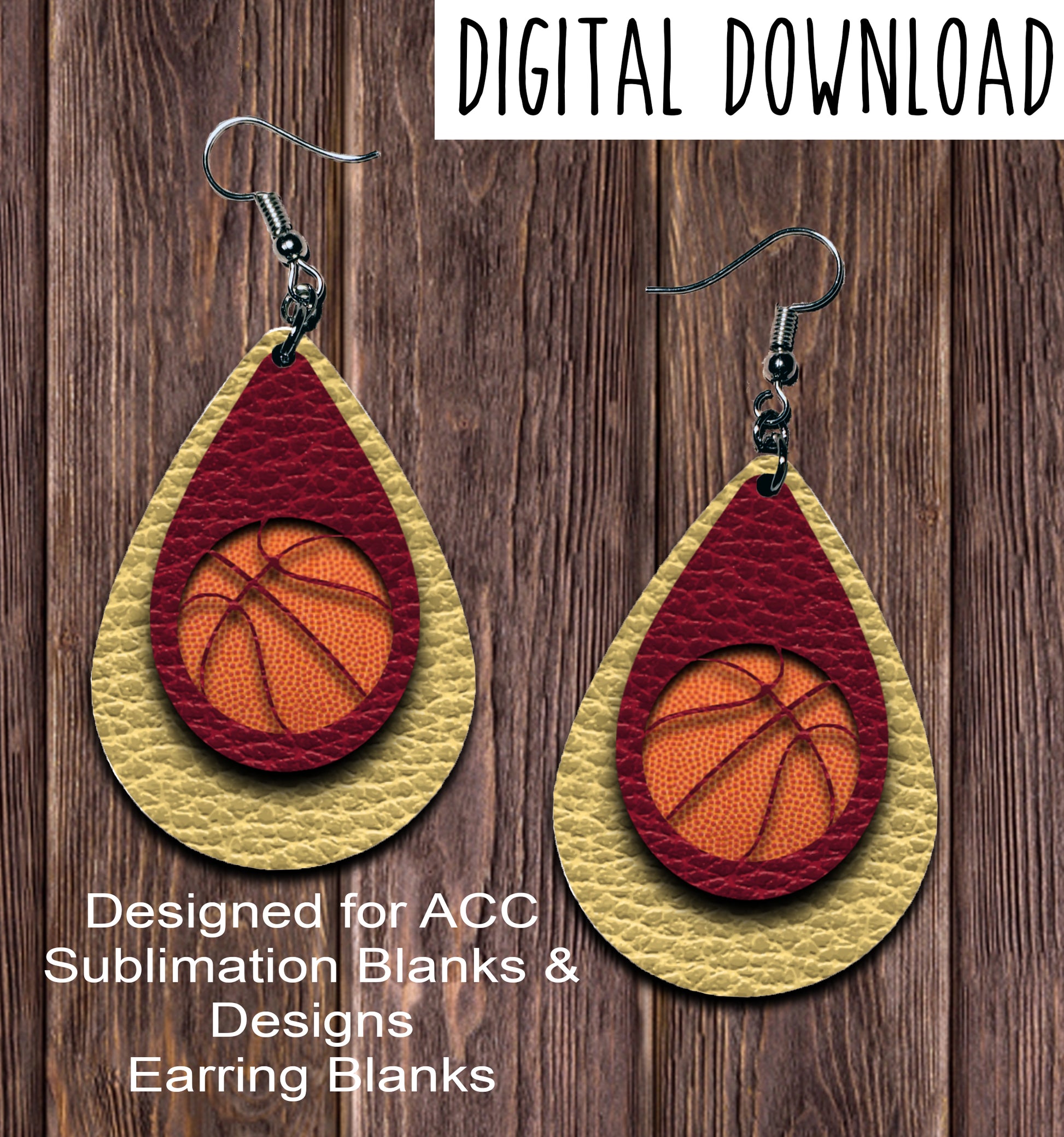 Light Gold Cardinal Basketball Cut Out Teardrop Earring Sublimation Design, Hand drawn Teardrop Sublimation earring design, digital download, JPG, PNG