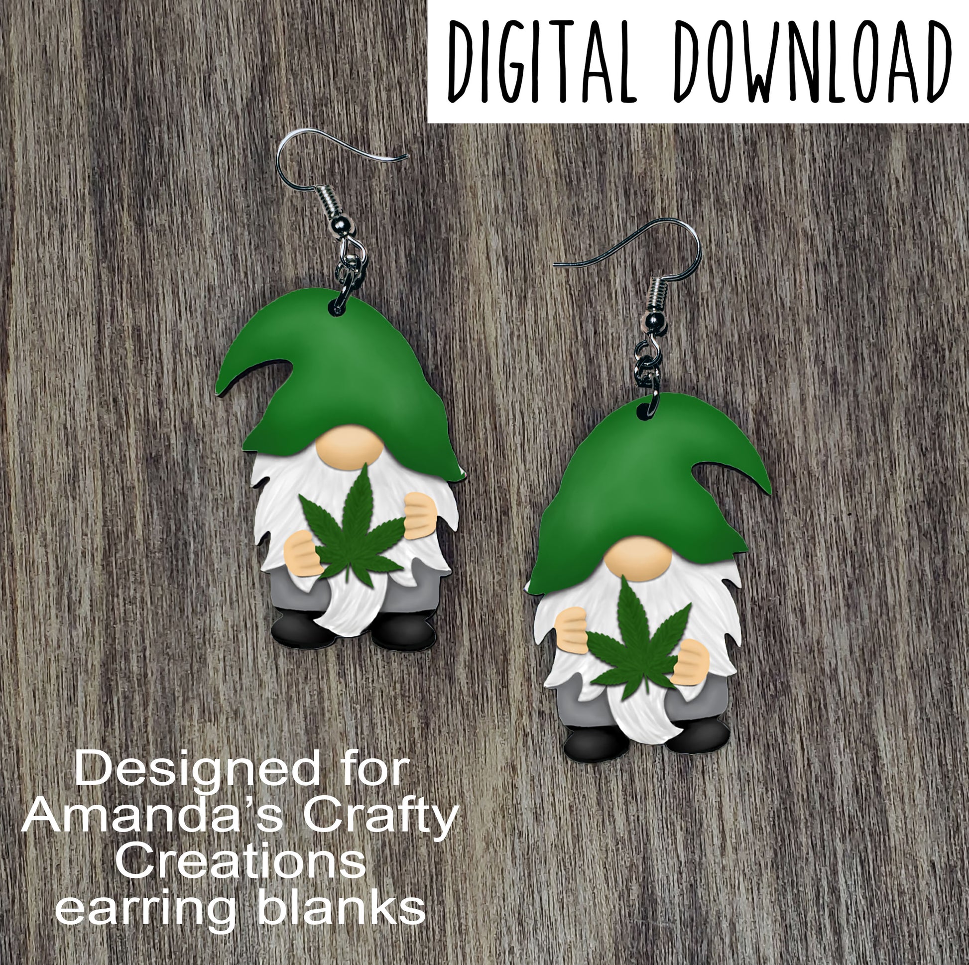 Marijuana Gnome Sublimation Design, Hand drawn Gnome Sublimation earring design, digital download, JPG, PNG