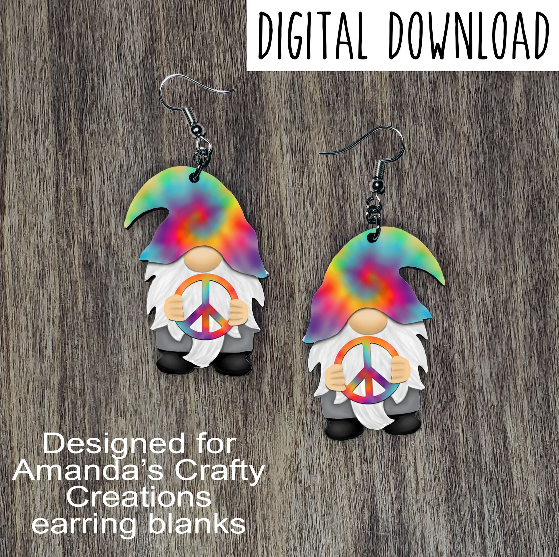 Peace Sign TieDye Gnome Sublimation Design, Hand drawn Gnome Sublimation earring design, digital download, JPG, PNG
