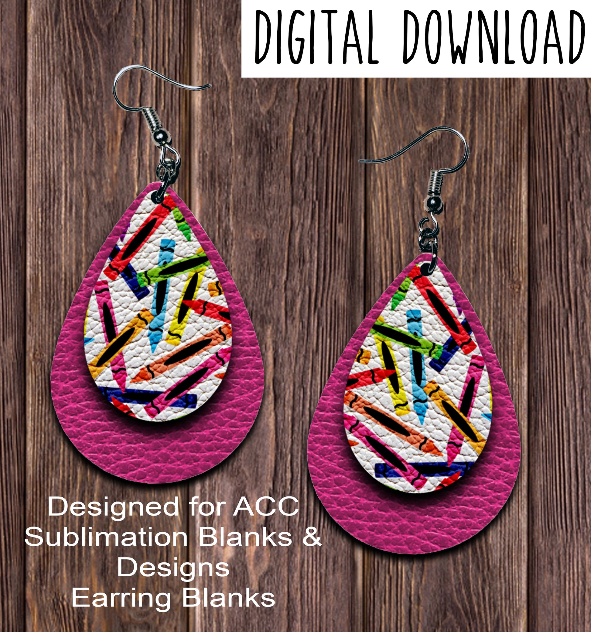 Pink Crayon Teardrop Earring Sublimation Design, Hand drawn Teardrop Sublimation earring design, digital download, JPG, PNG