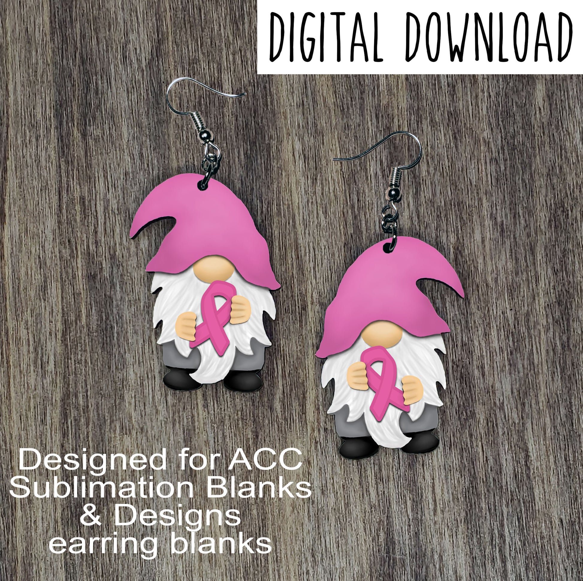 Pink Ribbon Breast Cancer Awareness Gnome with Pink Hat Earring Sublimation Design, Hand drawn Gnome Sublimation earring design, digital download, JPG, PNG
