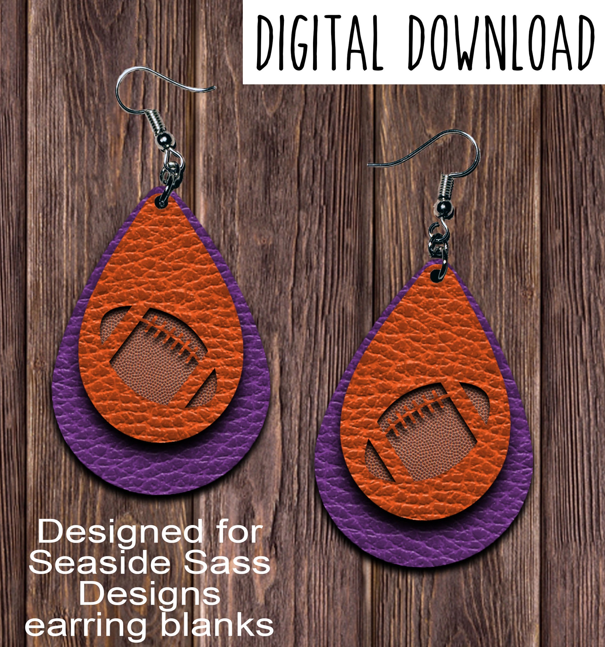 Purple Orange Football Cut OutTeardrop Earring Sublimation Design, Hand drawn Teardrop Sublimation earring design, digital download, JPG, PNG