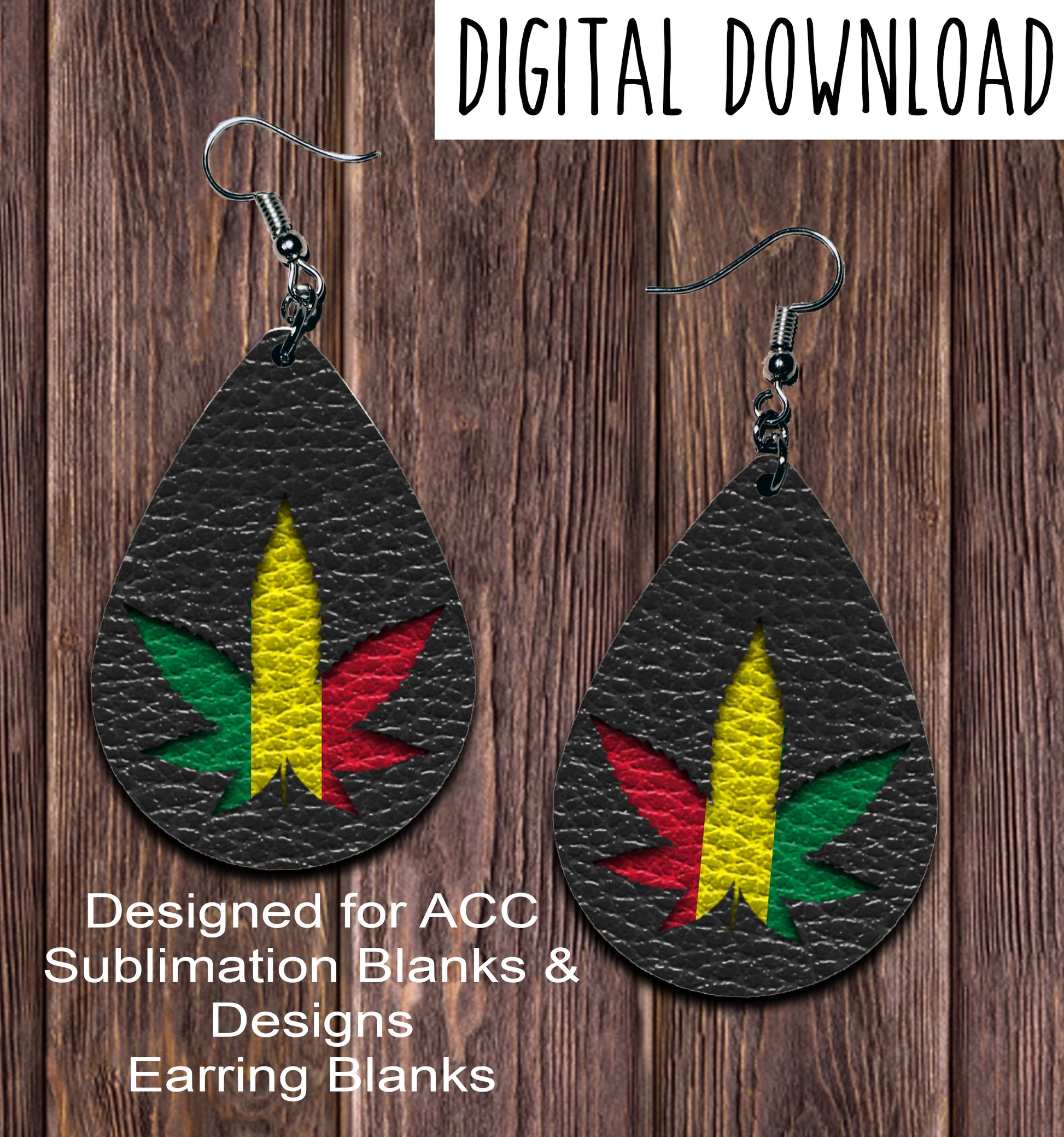 Rasta Marijuana Leaf Teardrop Earring Sublimation Design, Hand drawn Teardrop Sublimation earring design, digital download, JPG, PNG