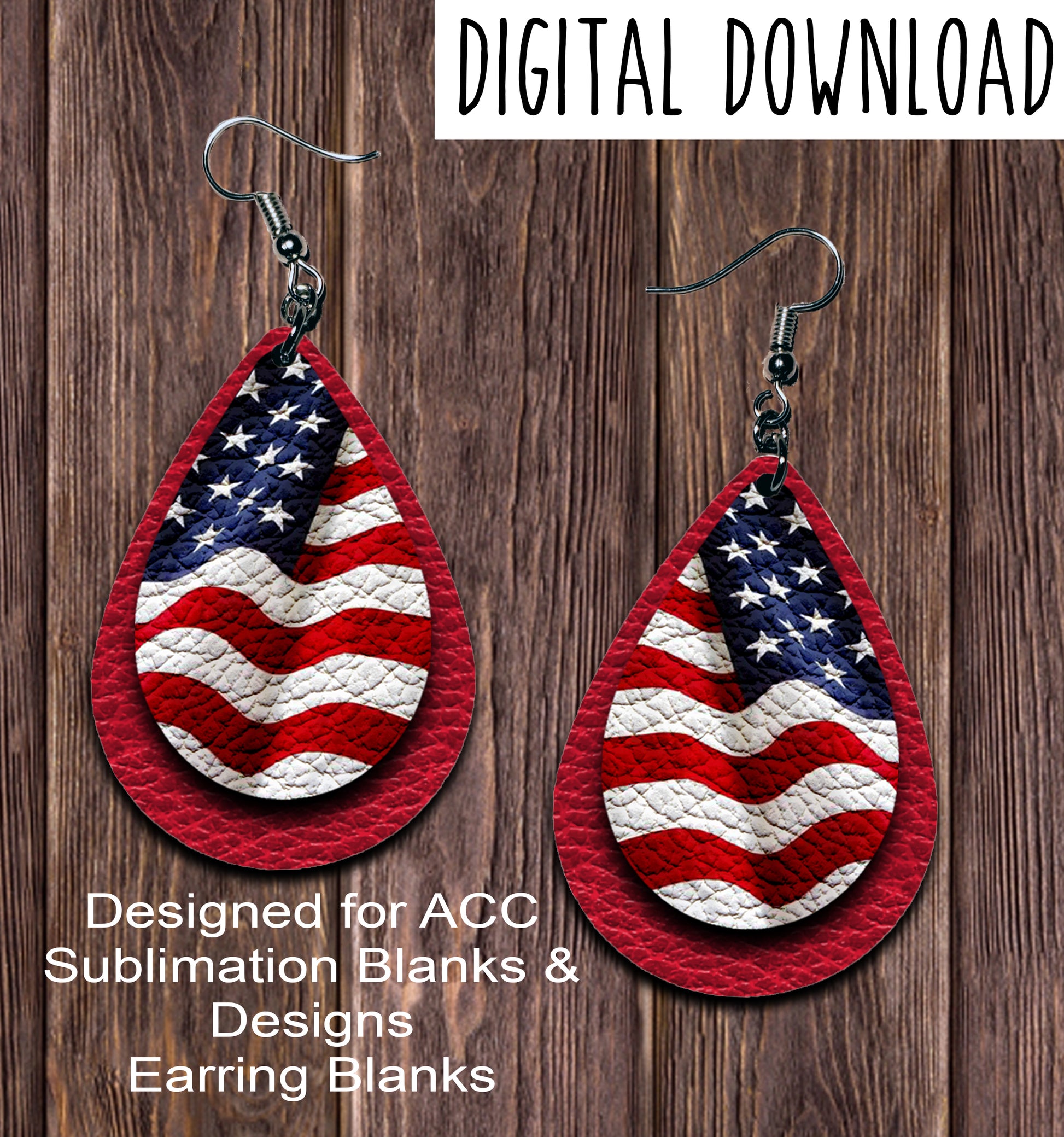 Red American Flag Teardrop Earring Sublimation Design, Hand drawn Teardrop Sublimation earring design, digital download, JPG, PNG