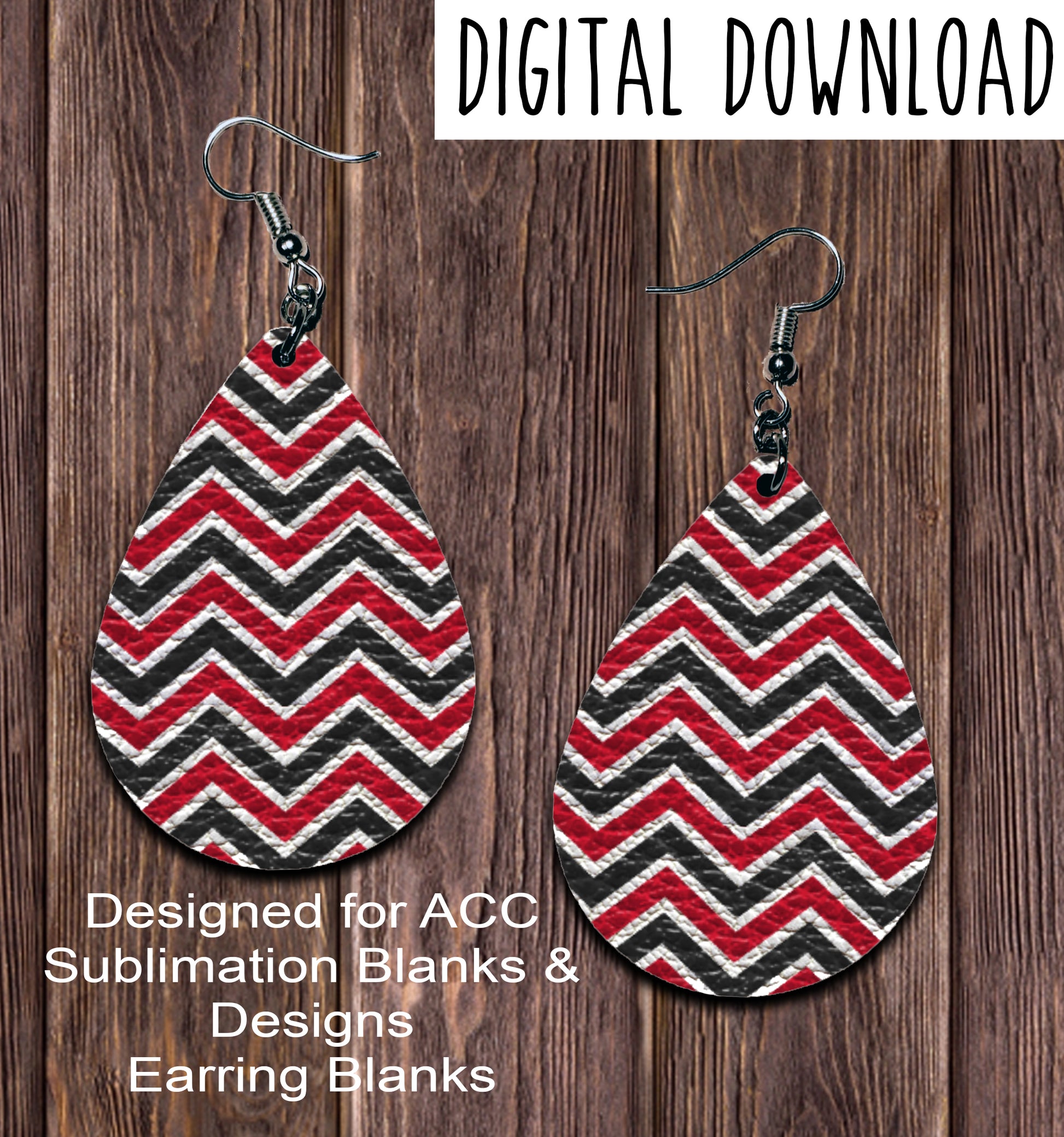 Red Black Chevron Teardrop Earring Sublimation Design, Hand drawn Teardrop Sublimation earring design, digital download, JPG, PNG