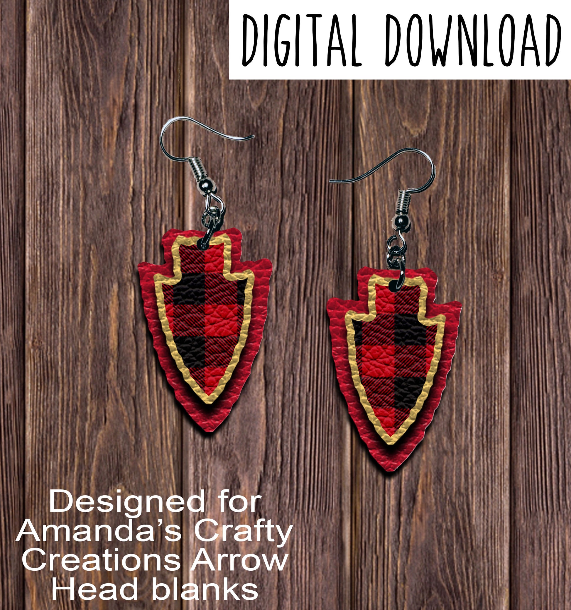 Red Buffalo Plaid Arrowhead Sublimation Earring Sublimation Design, Hand drawn Arrowhead Sublimation earring design, digital download, JPG, PNG