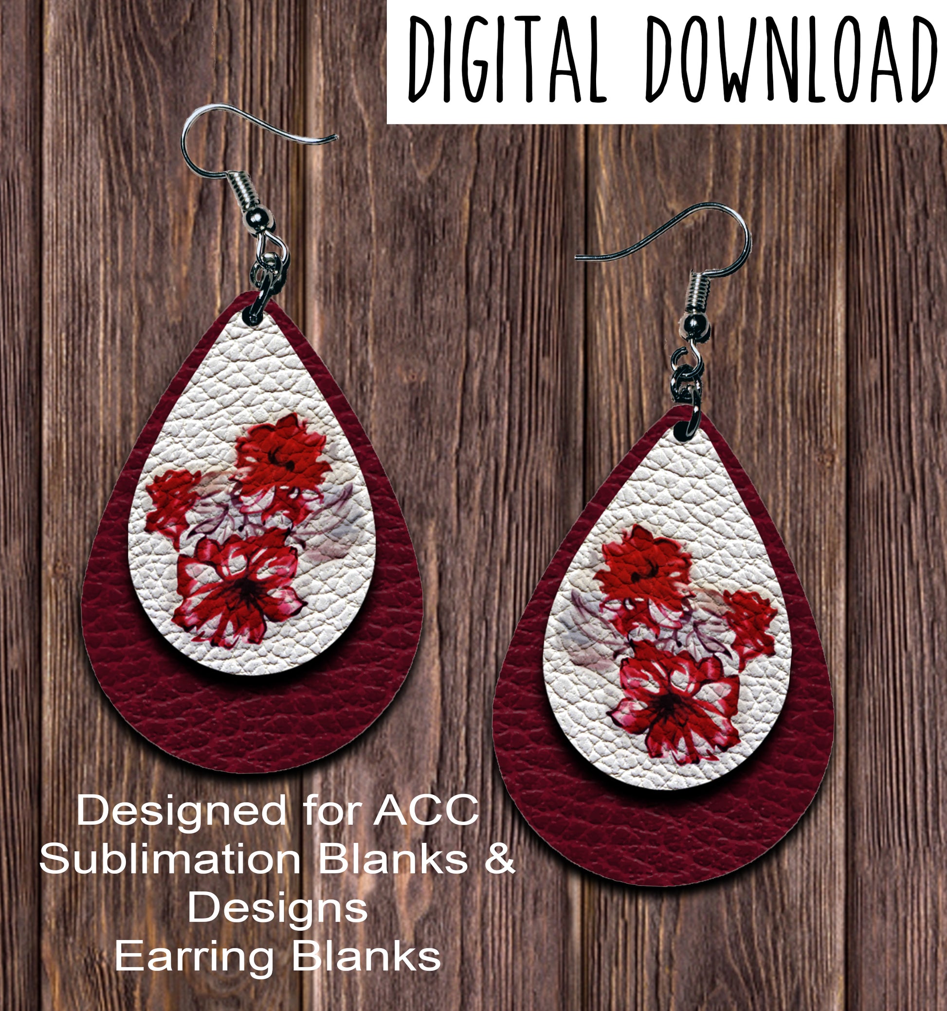 Red Flower Teardrop Earring Sublimation Design, Hand drawn Teardrop Sublimation earring design, digital download, JPG, PNG