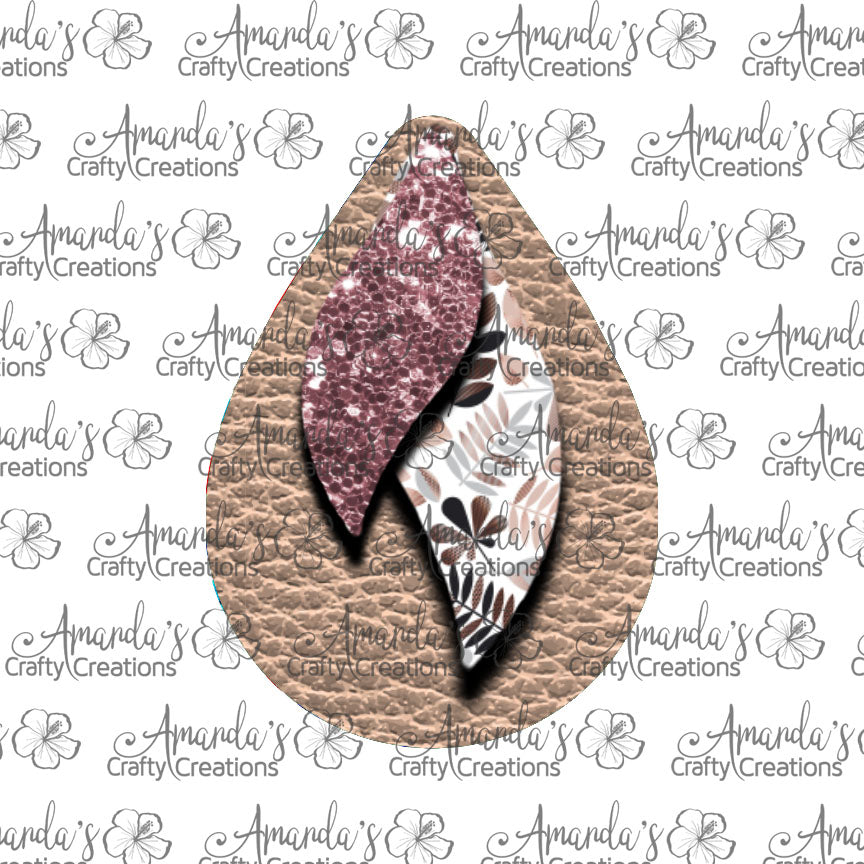 Rose Gold Tan Leaf Triple Layer Teardrop Earring Sublimation Design, Hand drawn Teardrop Sublimation earring design, digital download, JPG, PNG