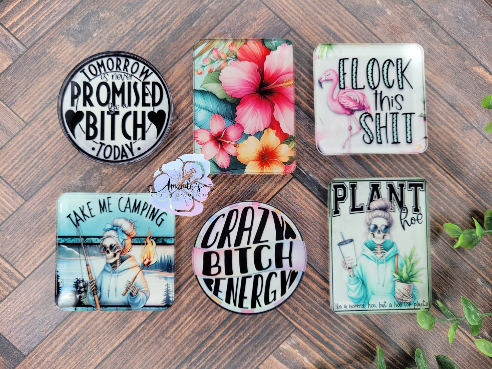 - Blank will be EXTREMELY hot. Each set includes 5 sublimation acrylic blanks, 5 vent clips, and 5 unscented round cotton discs.