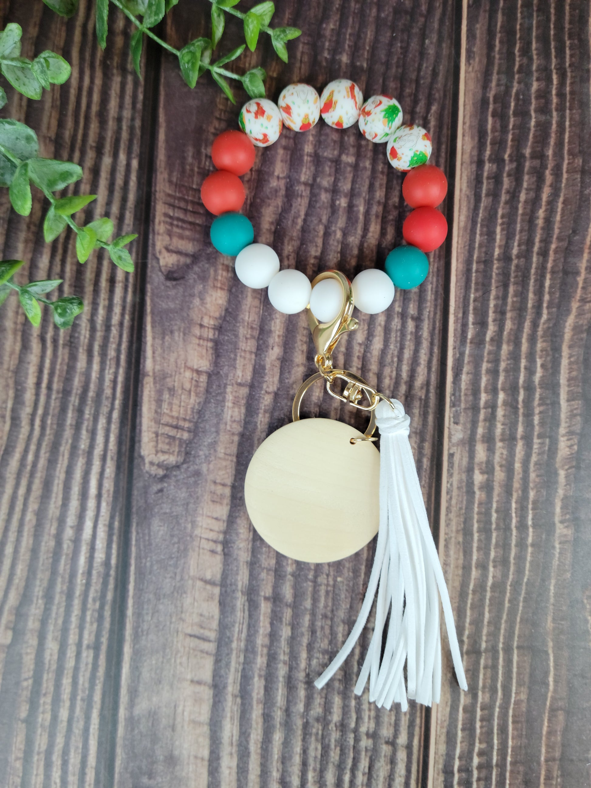Silicone bead keychain bracelet, wristlet, laser engraving blank, silicone bead wristlet, wood disc for engraving