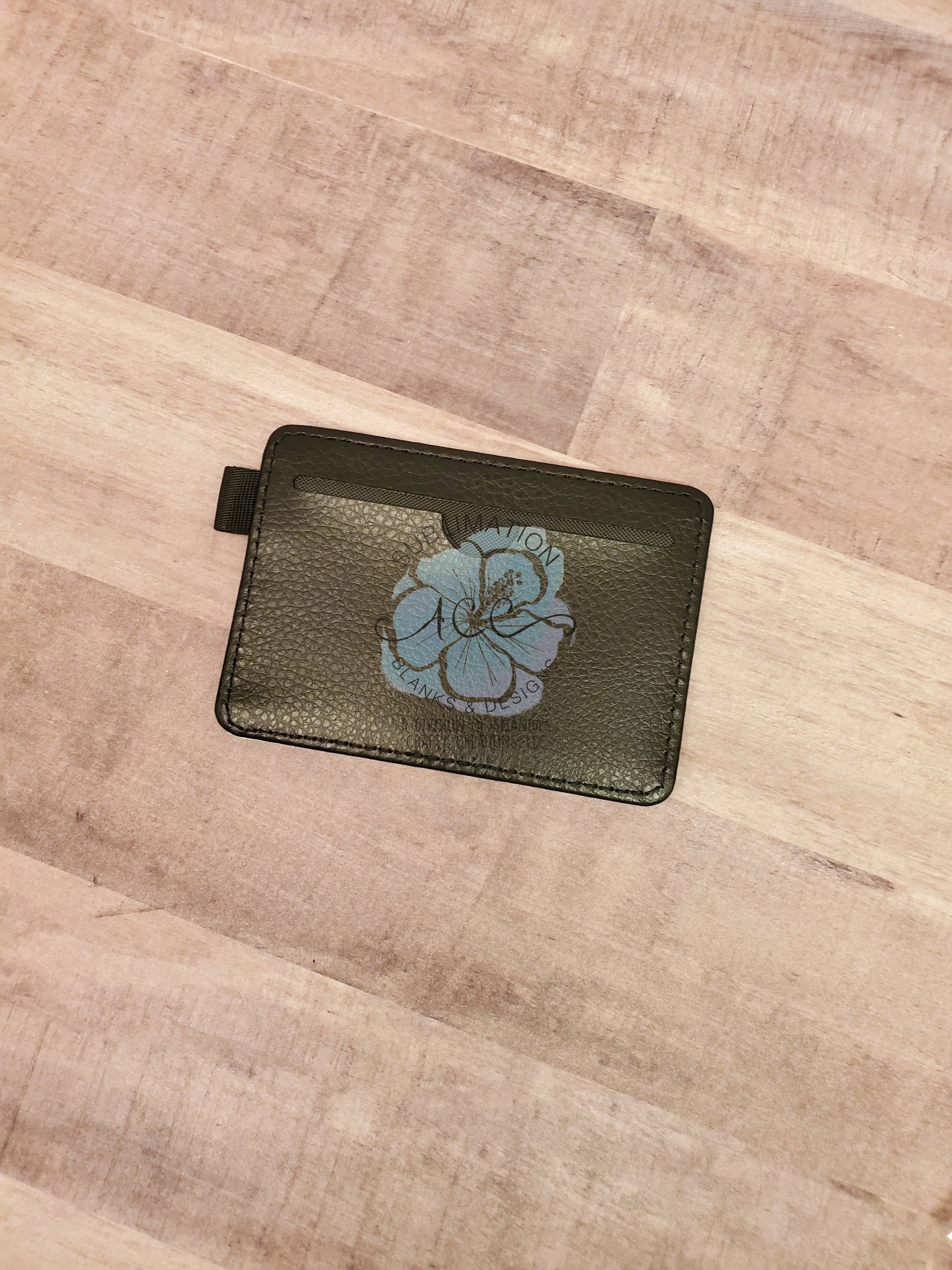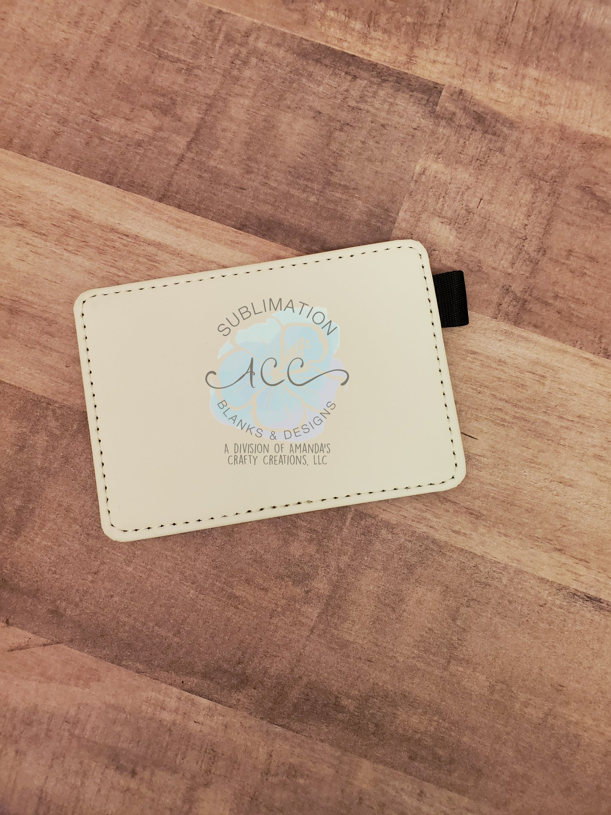 Leather card holder featuring white PU sublimation leather on one side and black PU leather with a card pocket on the other.