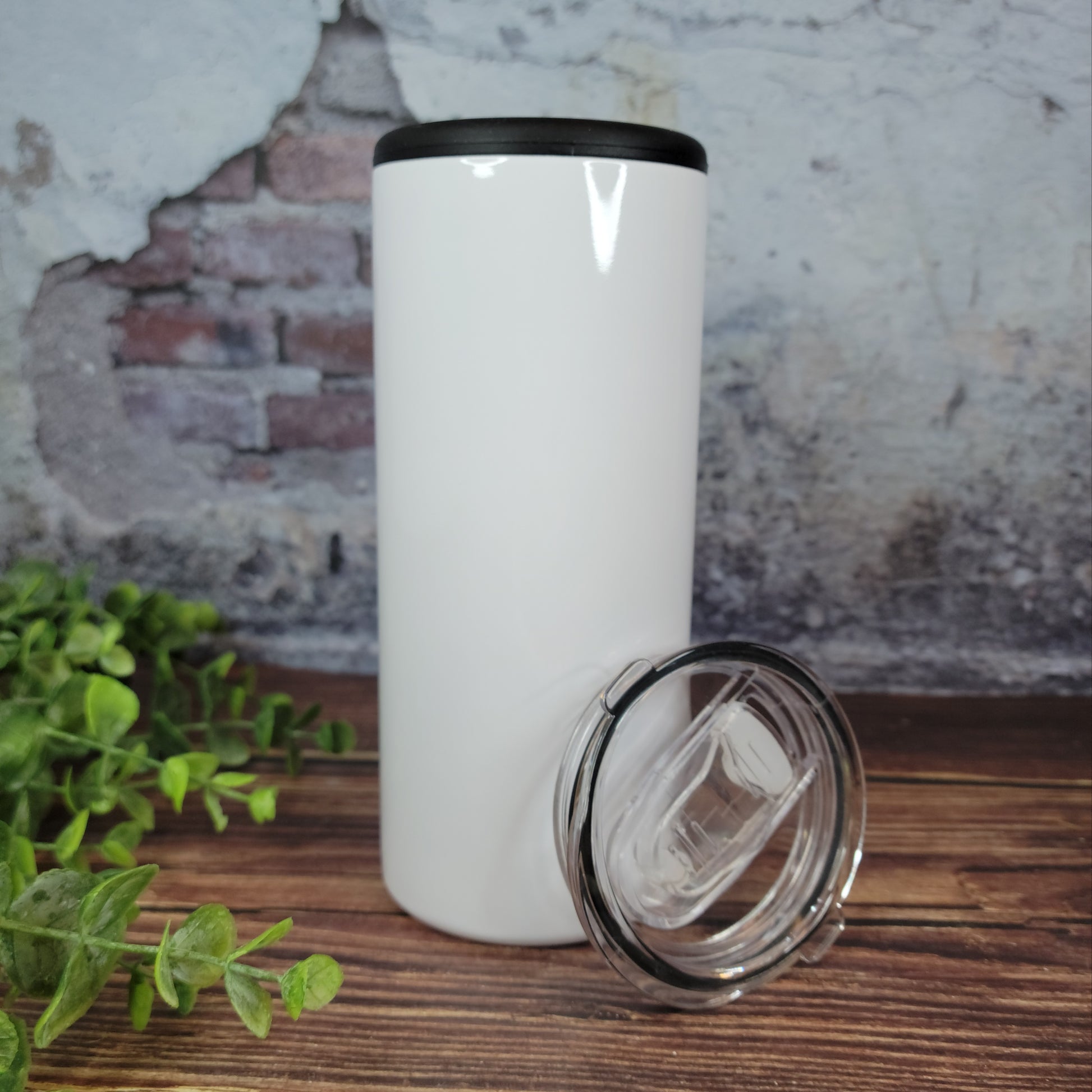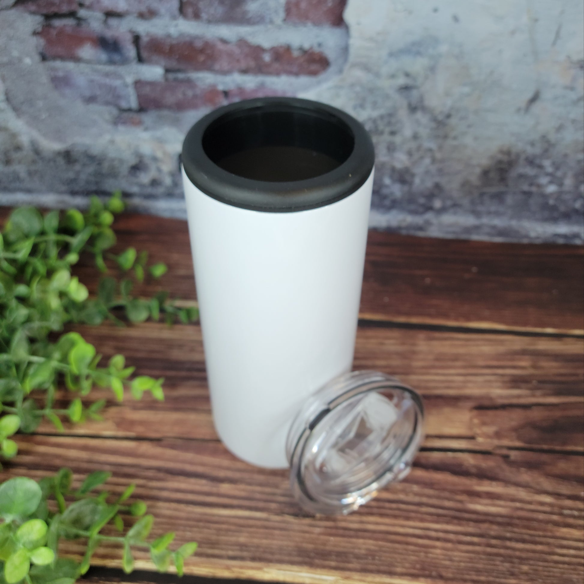 SKINNY Metal can holder 15oz Sublimation ready blanks RTS, skinny can cooler metal, 2 lids, 2 in 1 skinny metal can coolers