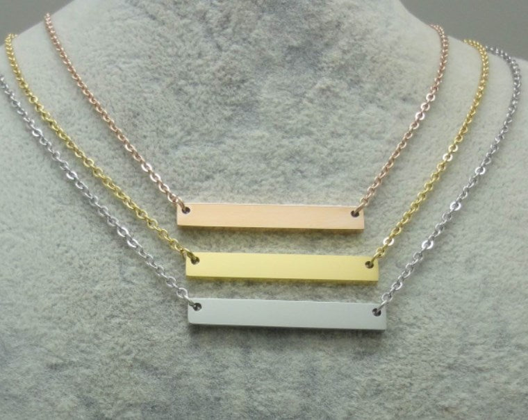 Stainless steel bar necklace blank with chain, silver, gold, rose gold, laser engraving blank, stainless steel necklace RTS