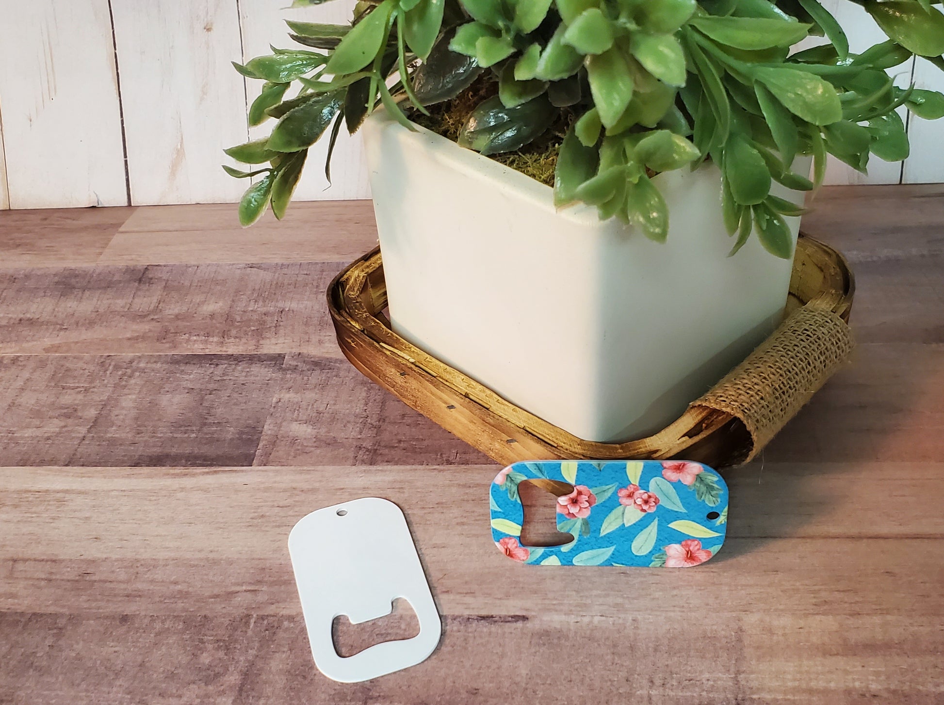 Enhance your keychain collection with our blank white dog tag-style bottle openers, designed for sublimation printing on both sides.