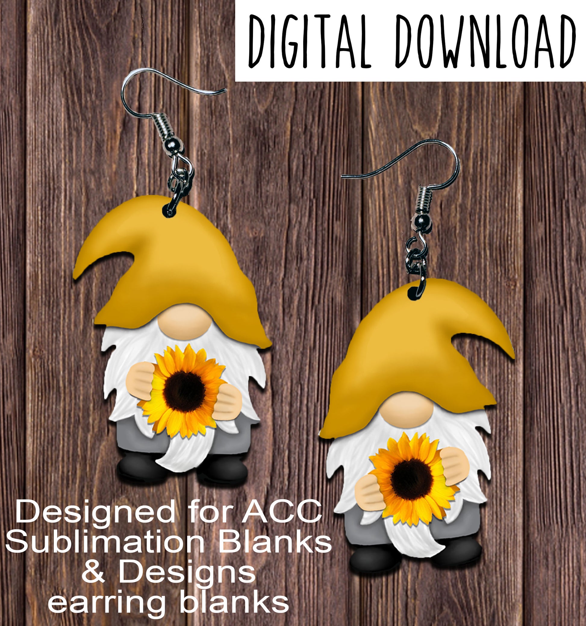 Sunflower Gnome Earring Sublimation Design, Hand drawn Gnome Sublimation earring design, digital download, JPG, PNG
