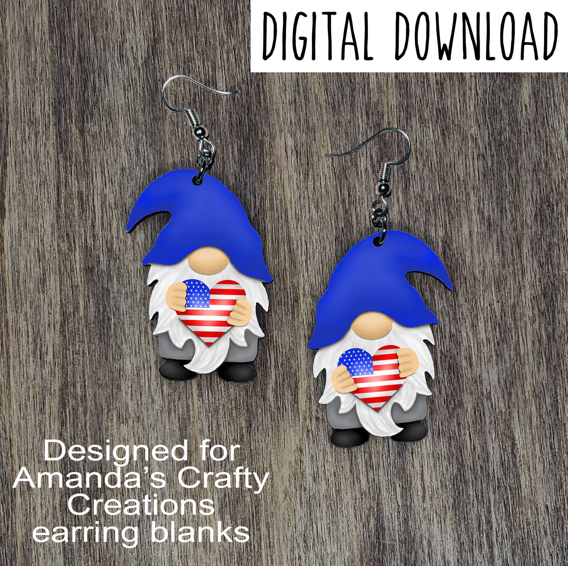 USA Gnome with Sublimation Design, Hand drawn Gnome Sublimation earring design, digital download, JPG, PNG