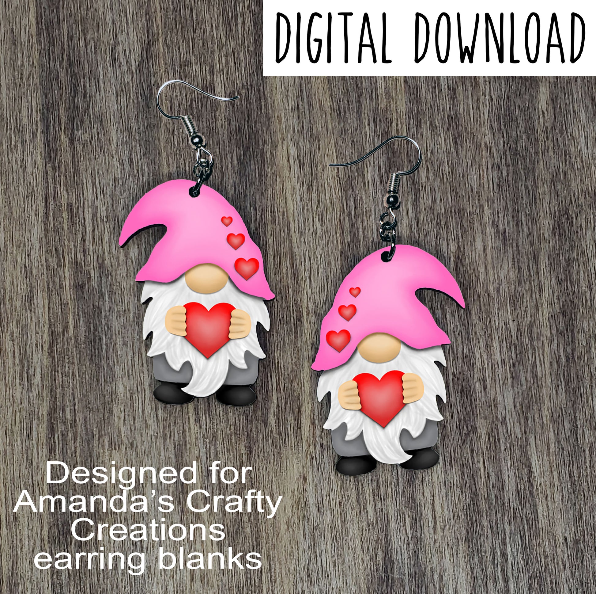 Valentine's Gnome with Sublimation Design, Hand drawn Gnome Sublimation earring design, digital download, JPG, PNG