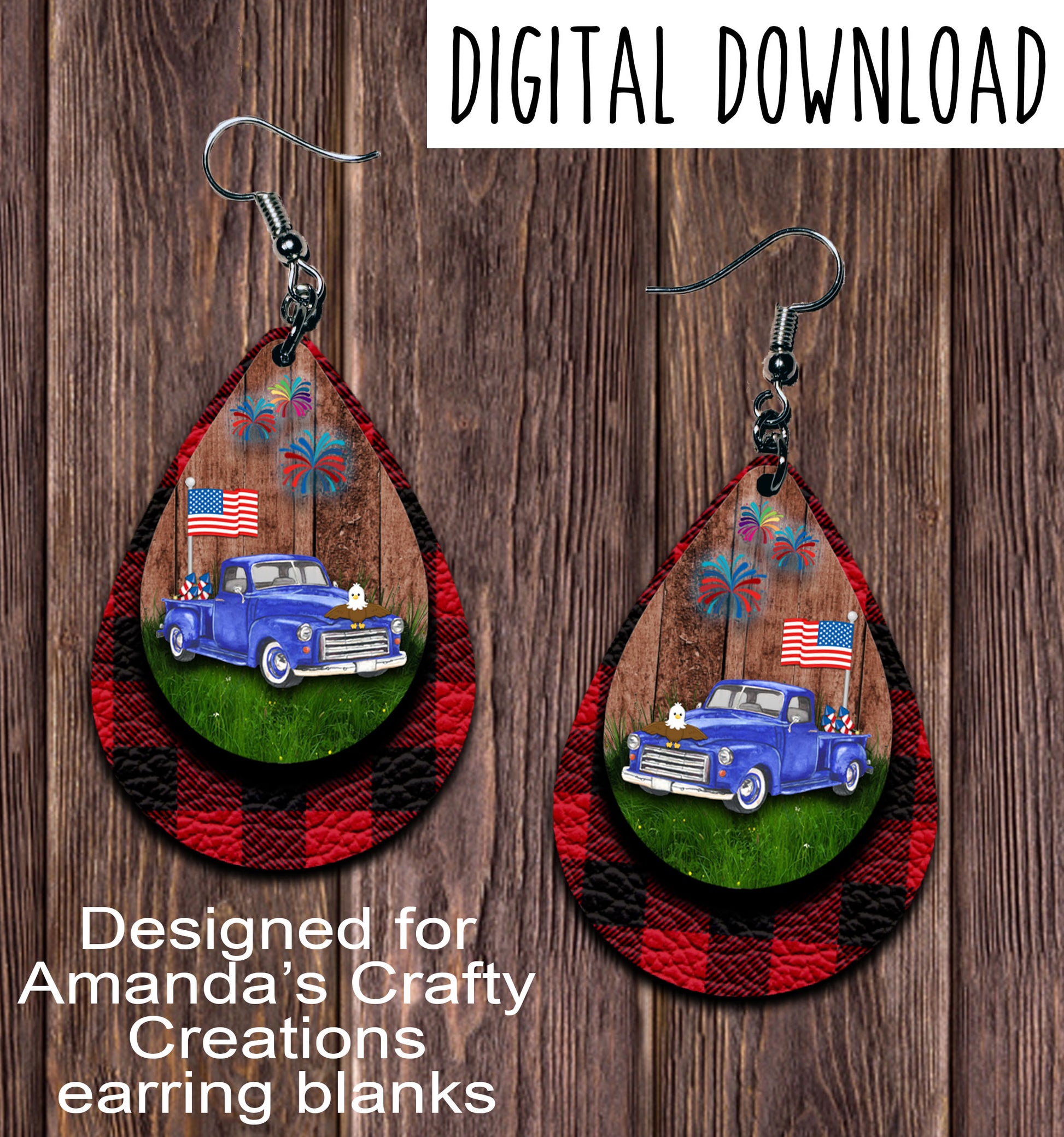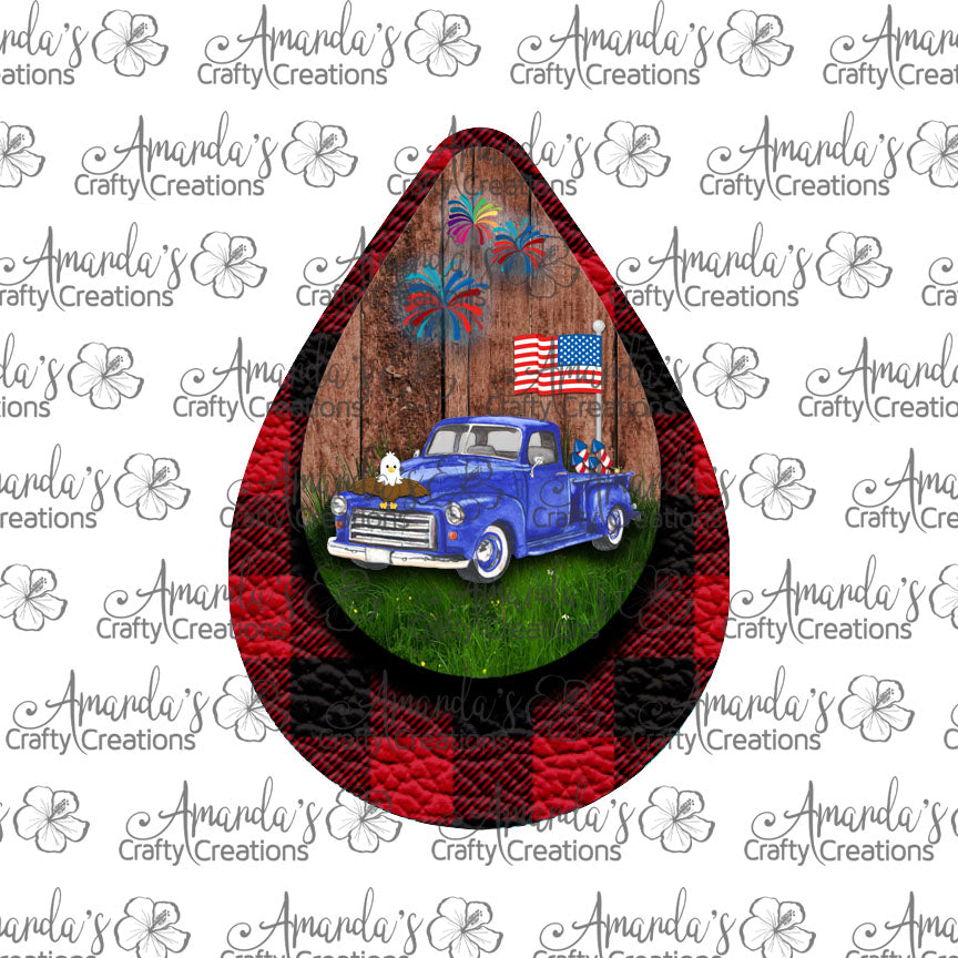 Vintage Blue Truck 4th of July Red Buffalo Plaid Teardrop Earring Sublimation Design, Hand drawn Teardrop Sublimation earring design, digital download, JPG, PNG